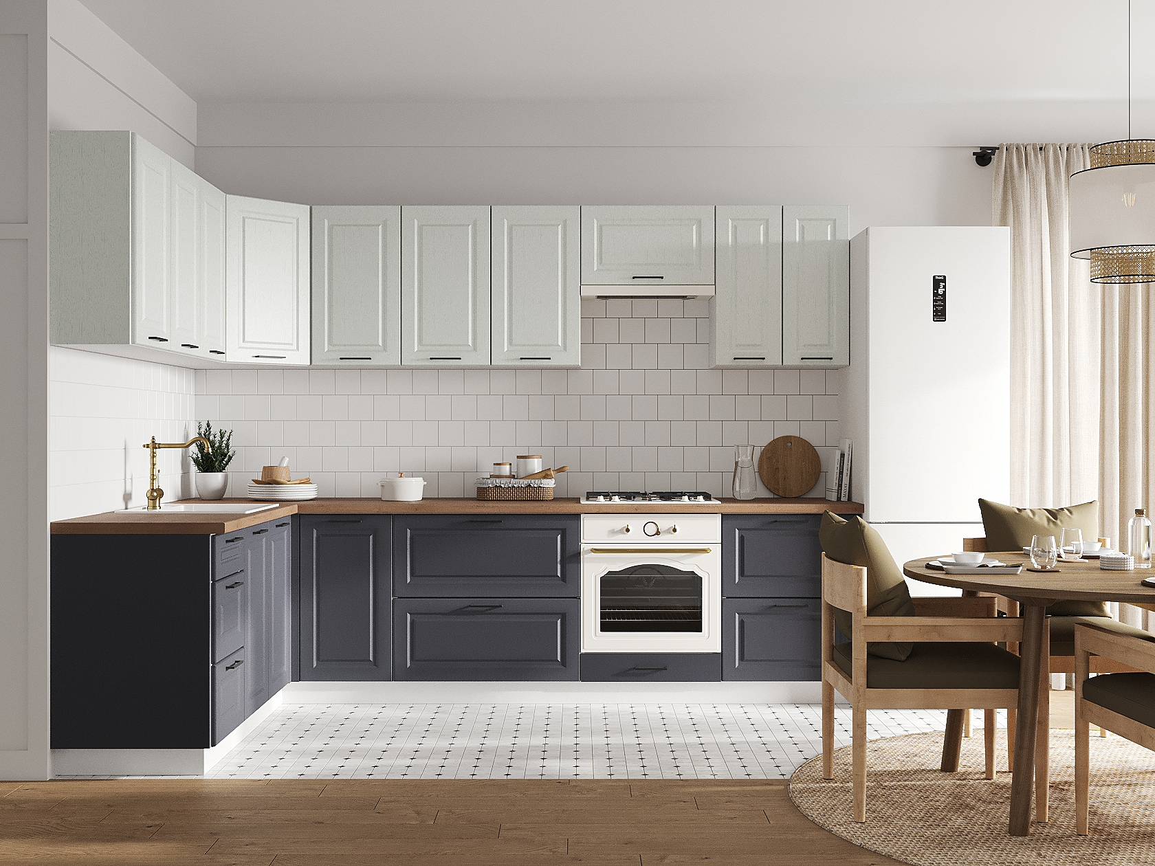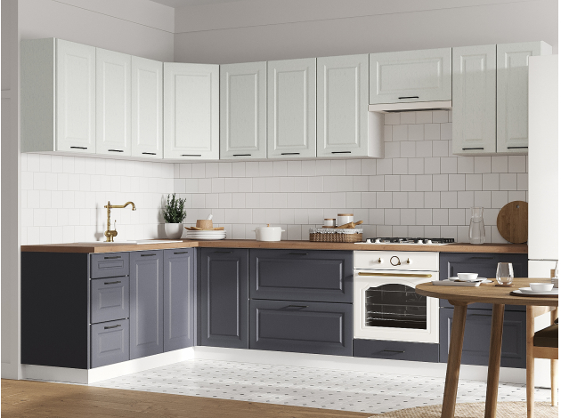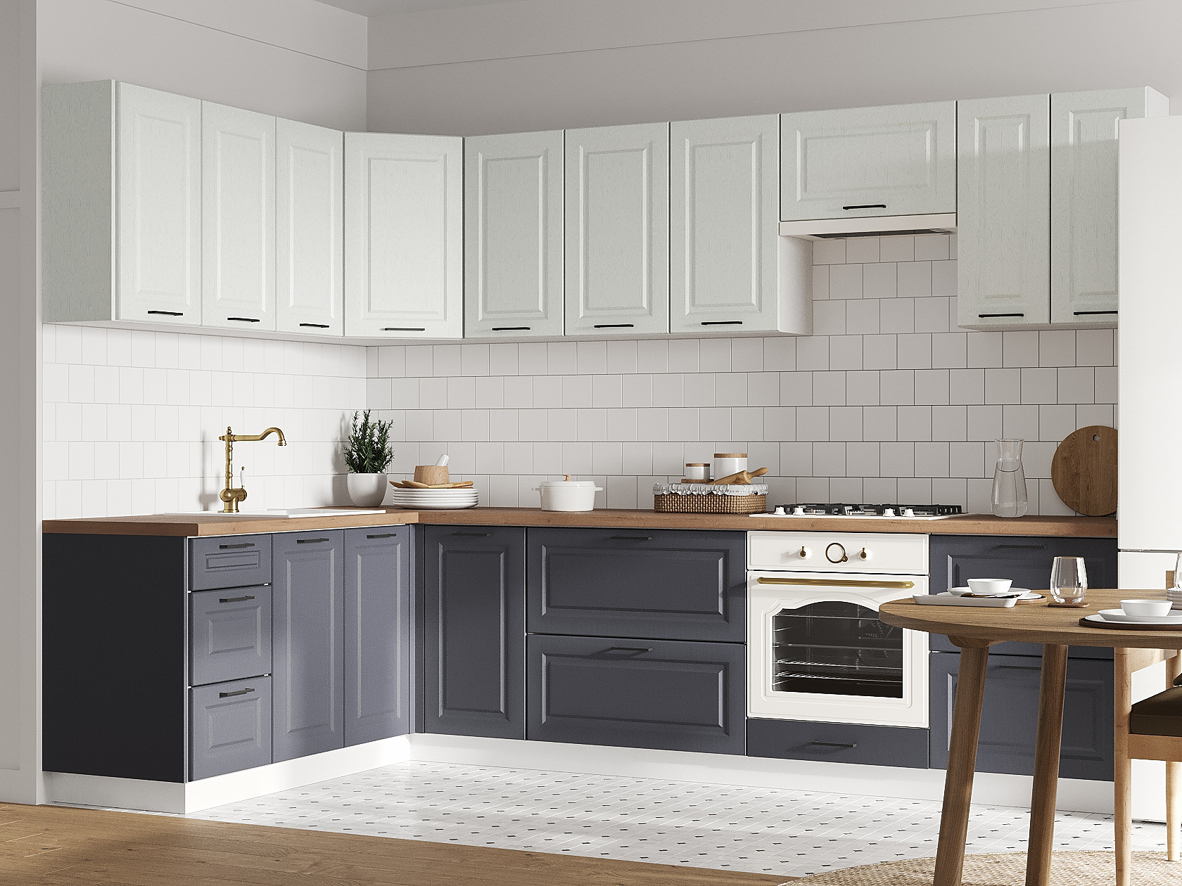 Кухонный гарнитур Грейвуд 300х180 см Белый / Арктик / Шато индиго