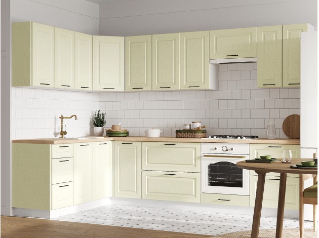 Кухонный гарнитур Грейвуд 300х180 см Белый / Дуб кремовый