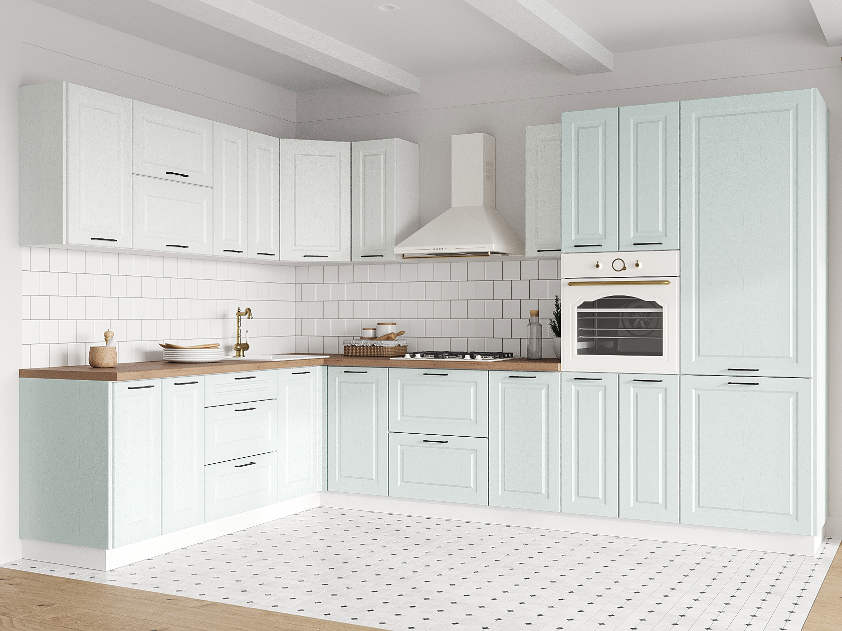 Кухонный гарнитур Грейвуд 320х220 см Белый / Арктик / Деним голубой