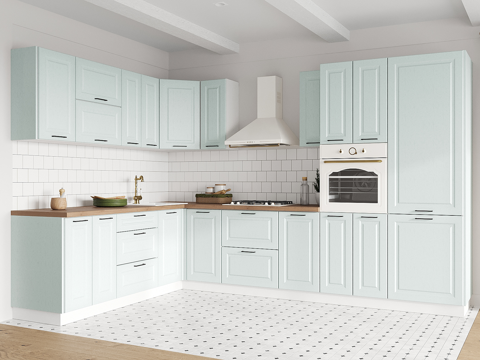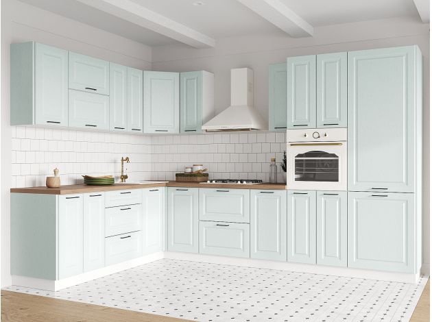 Кухонный гарнитур Грейвуд 320х220 см Белый / Деним голубой
