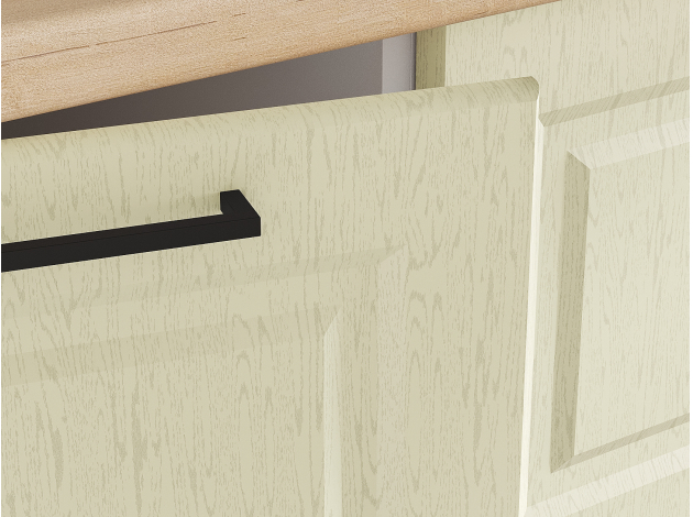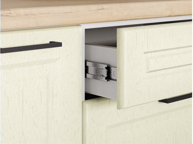 Фасады с внутренней стороны имеют базовые несквозные отверстия под ручки 12,8 см, при желании, можно установить ручки другого размера, просверлив отверстия на фасаде по месту.