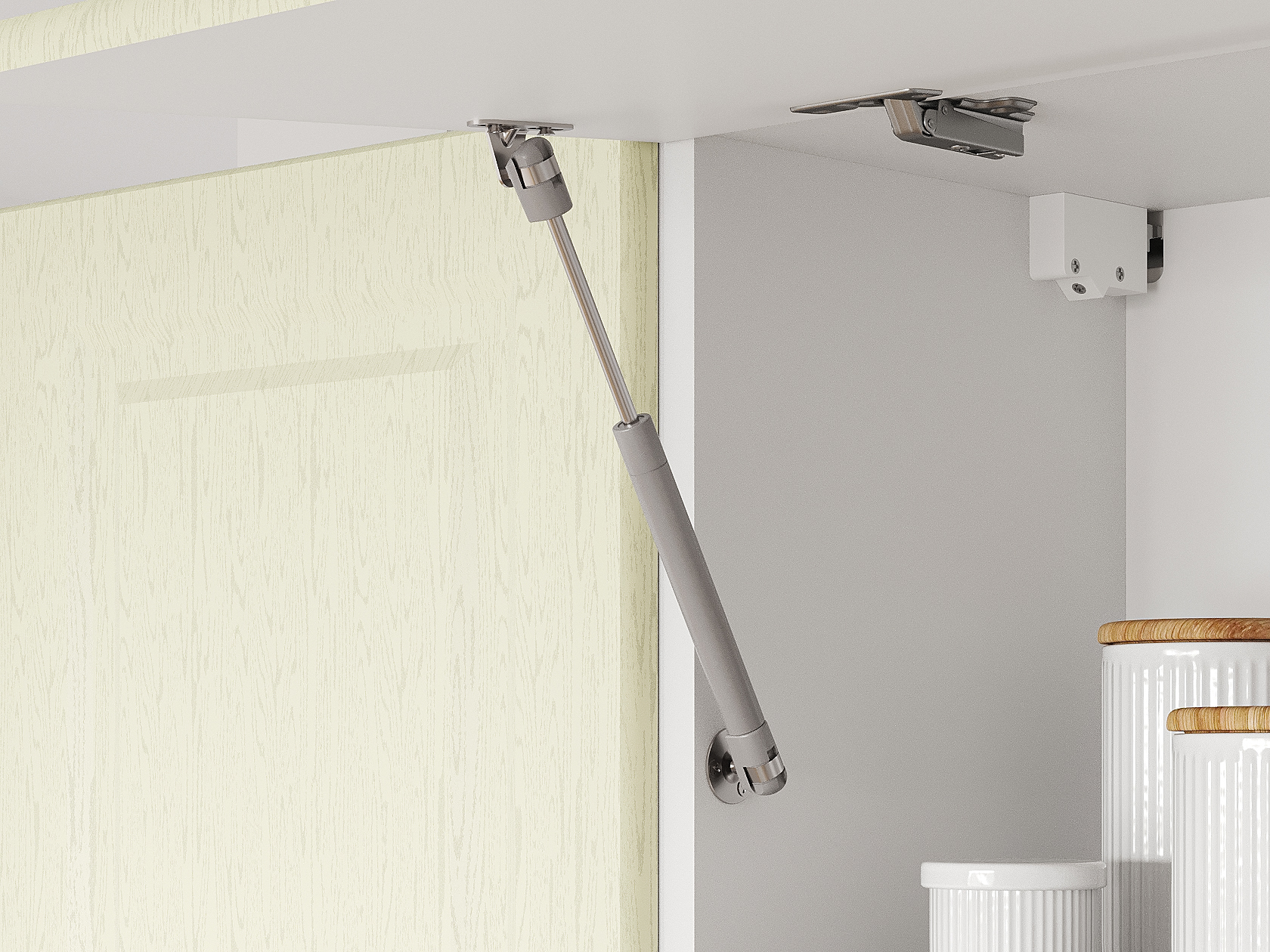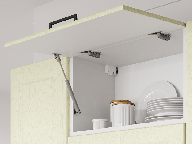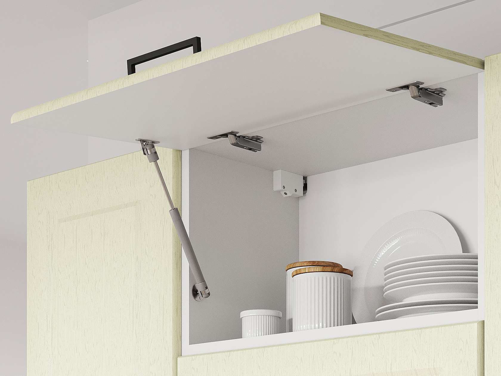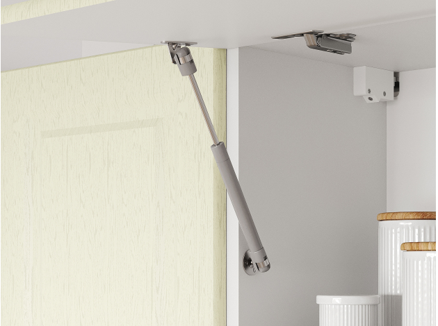 - Фурнитура дверей антресольных шкафов: подъемник с газовым кронштейном.