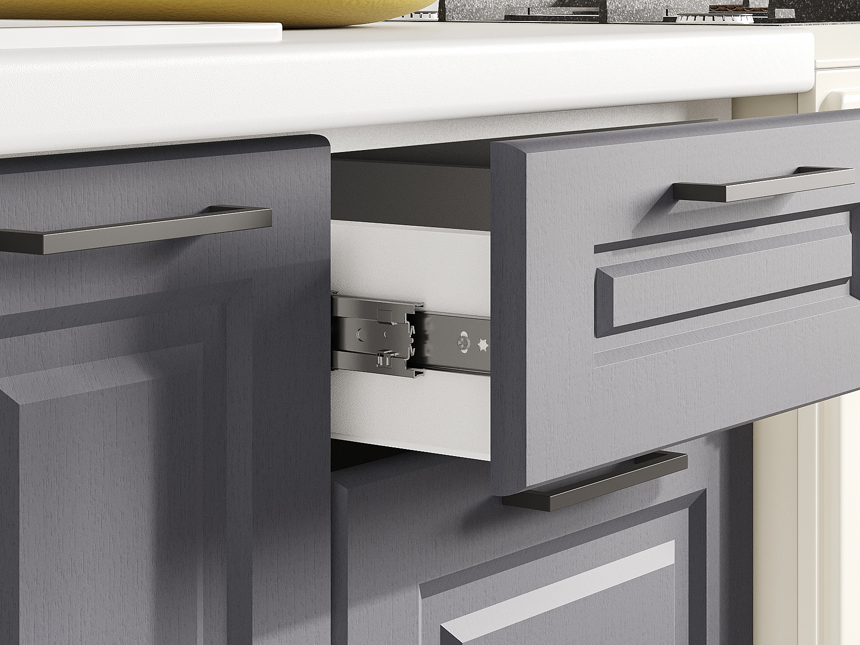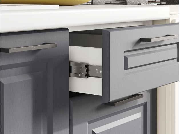 - Направляющие ящиков: шариковые.