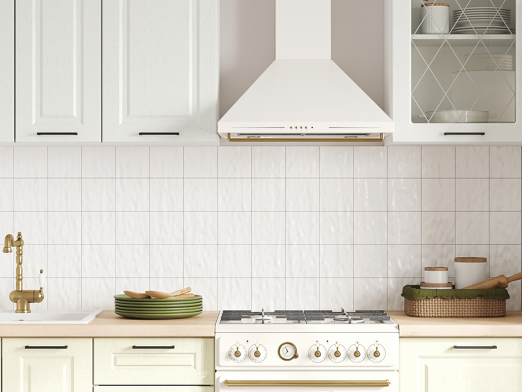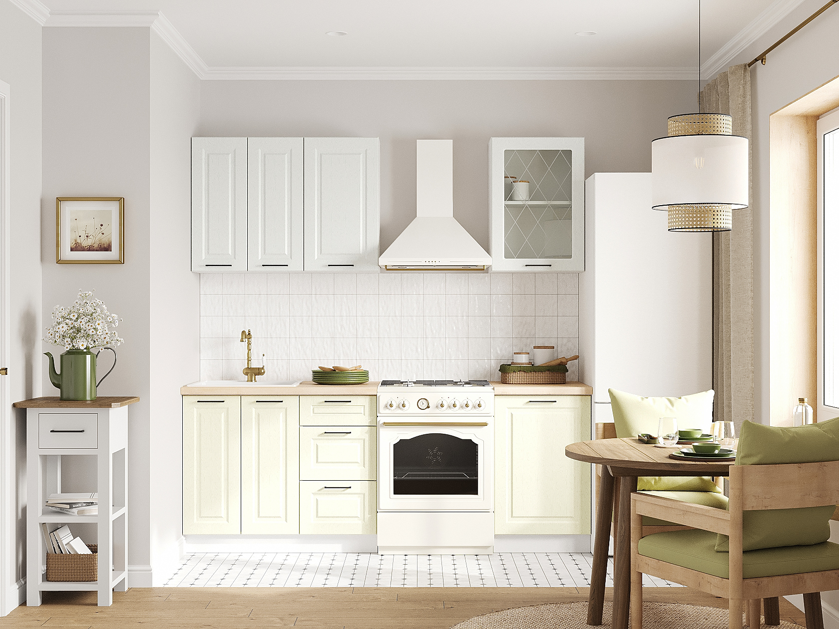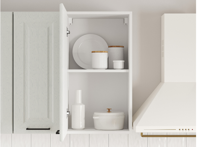 Кухонный гарнитур Грейвуд 150 см Белый / Арктик со стеклом / Дуб кремовый