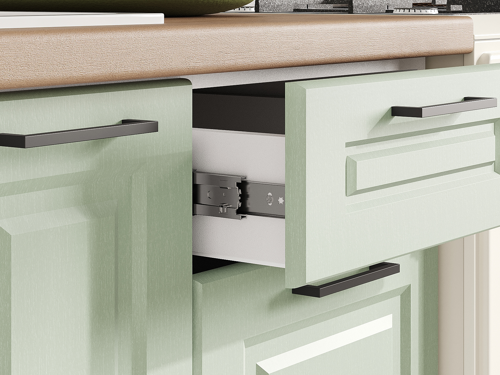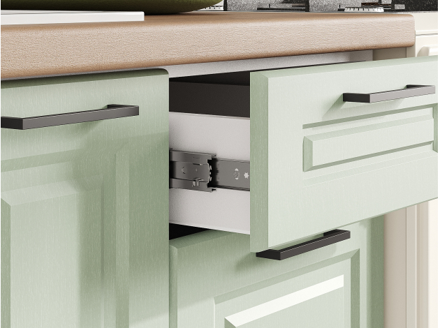 - Направляющие ящиков: шариковые.