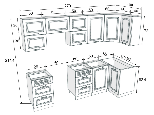 Кухонный гарнитур Грейвуд 210х100 см