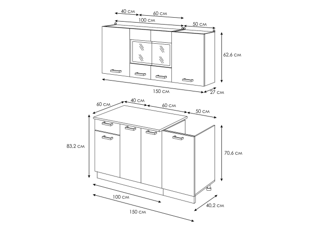 Кухонный гарнитур Хозяюшка Белый гладкий / Дуб Вотан / столешница Калаката Без шкафа под вытяжку 150 см
