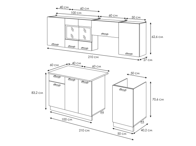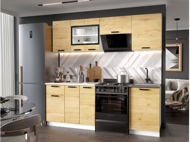 Кухонный гарнитур Хозяюшка Дуб Вотан / столешница Калаката Со шкафом под вытяжку 210 см