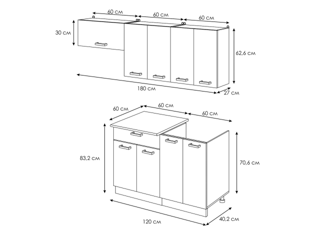 - Стол под мойку: 84 х 60 х 42 см.