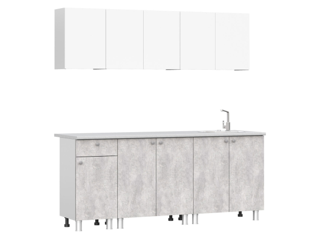 Кухонный гарнитур Кайган Белый / Цемент светлый / столешница Антарес 200 см 200 см