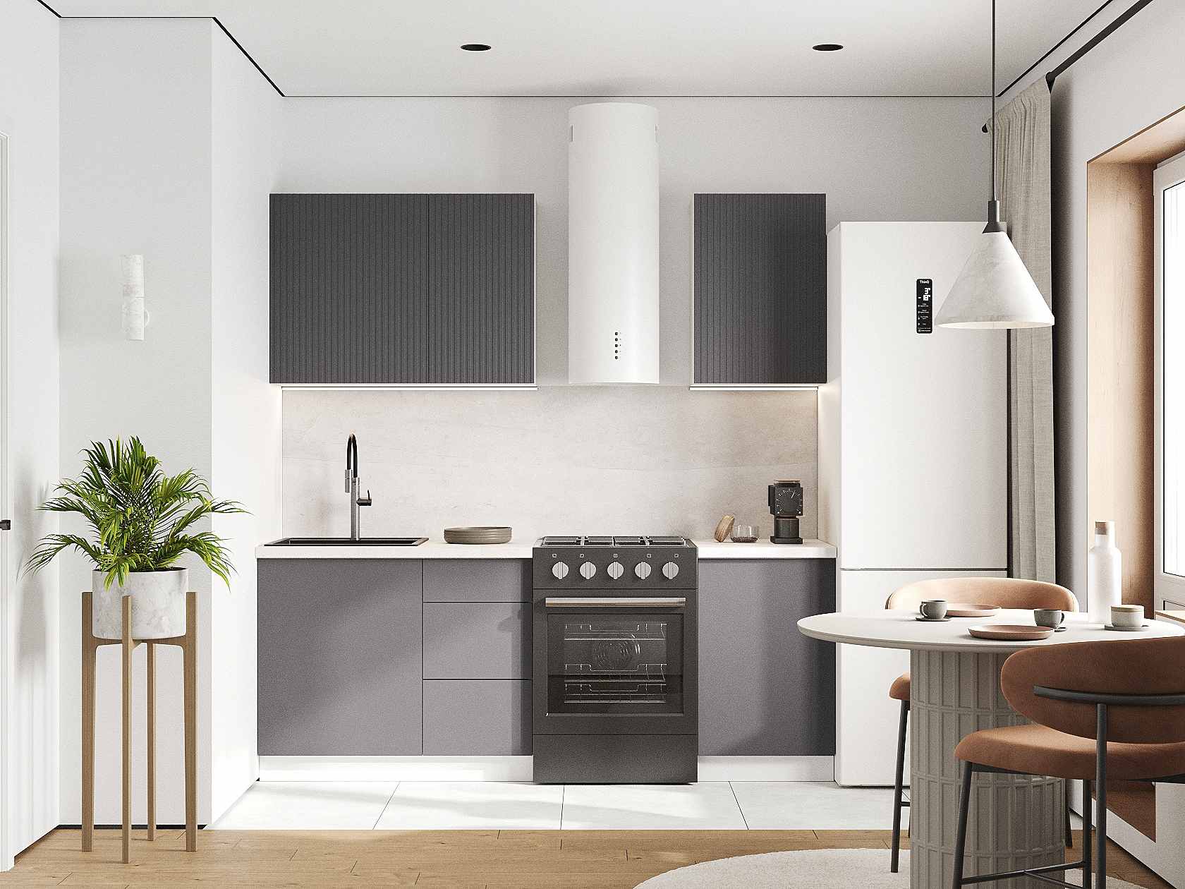 Кухонный гарнитур Комби 150 см Белый / Графит