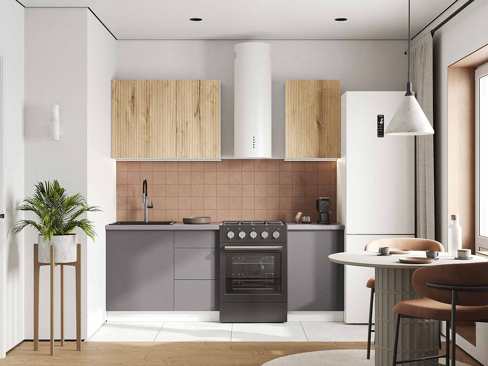 Кухонный гарнитур Комби 150 см — практичное решение для небольшой квартиры или загородного дома. Лаконичное исполнение и продуманные зоны для хранения посуды и продуктов делают набор мебели идеальным дополнением современного интерьера. Матовые фасады не создают проблем в уходе.