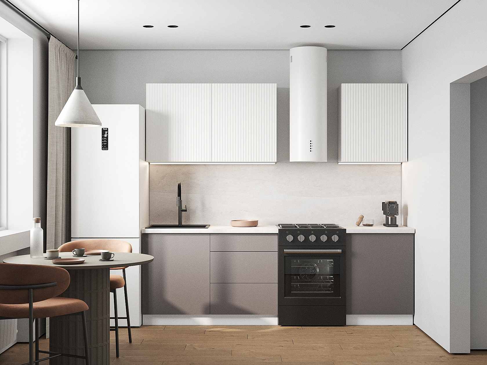 Кухонный гарнитур Комби 180 см Белый / Бланж / Грей