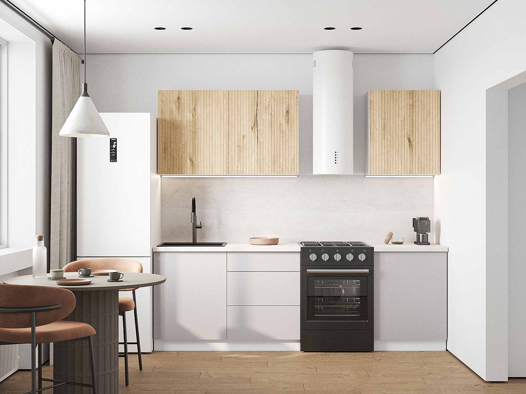 Кухонный гарнитур Комби 180 см Белый / Дуб Торонто / Нео
