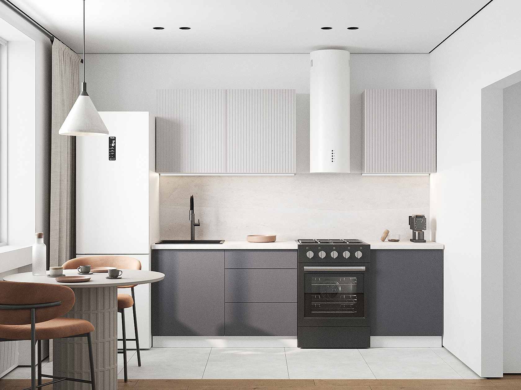 Кухонный гарнитур Комби 180 см Белый / Нео / Графит