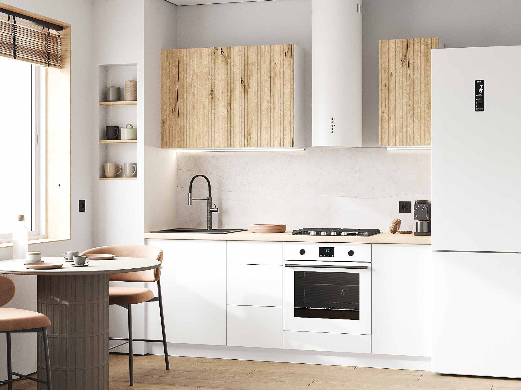 Кухонный гарнитур Комби 200 см Белый / Дуб Торонто / Бланж