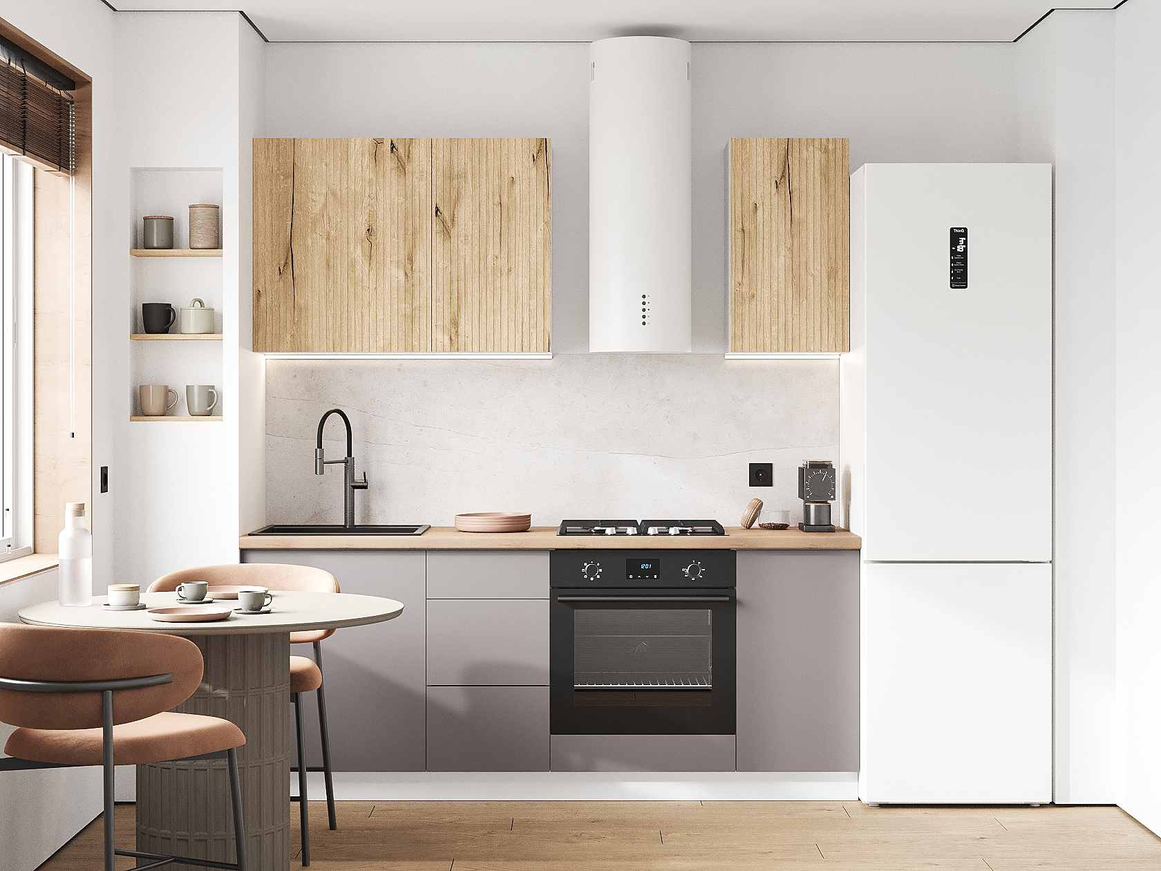 Кухонный гарнитур Комби 200 см Белый / Дуб Торонто / Грей