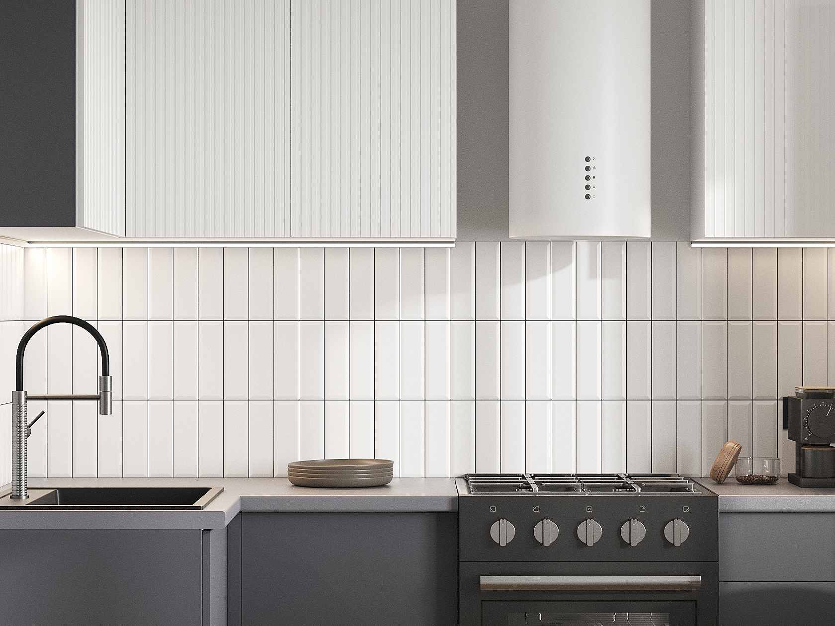 Кухонный гарнитур Комби 210х100 см Белый / Бланж / Графит