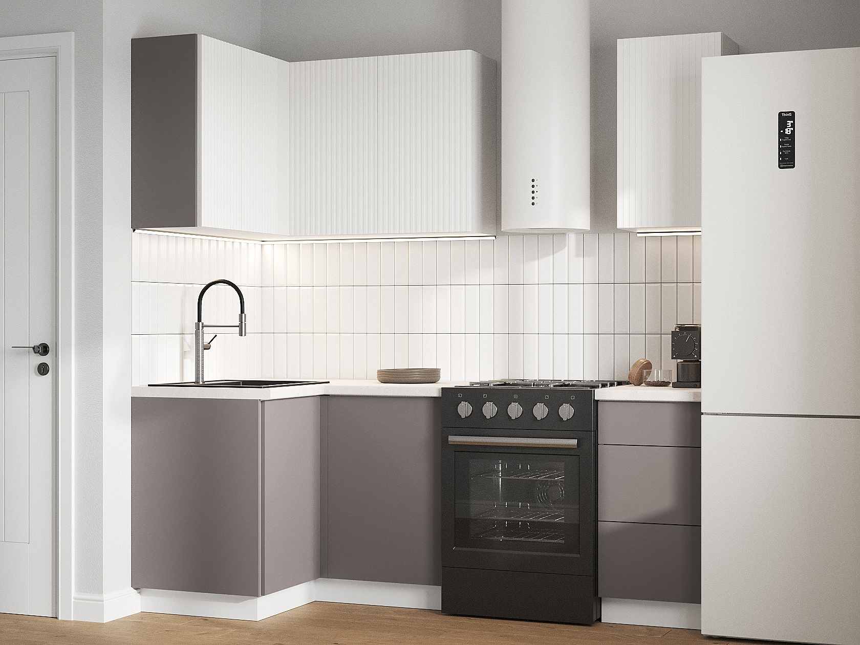 Обратите внимание, столешницу, мойку, смеситель, цоколь, стеновую панель, ручки и механизм «push-to-open» необходимо приобрести отдельно.