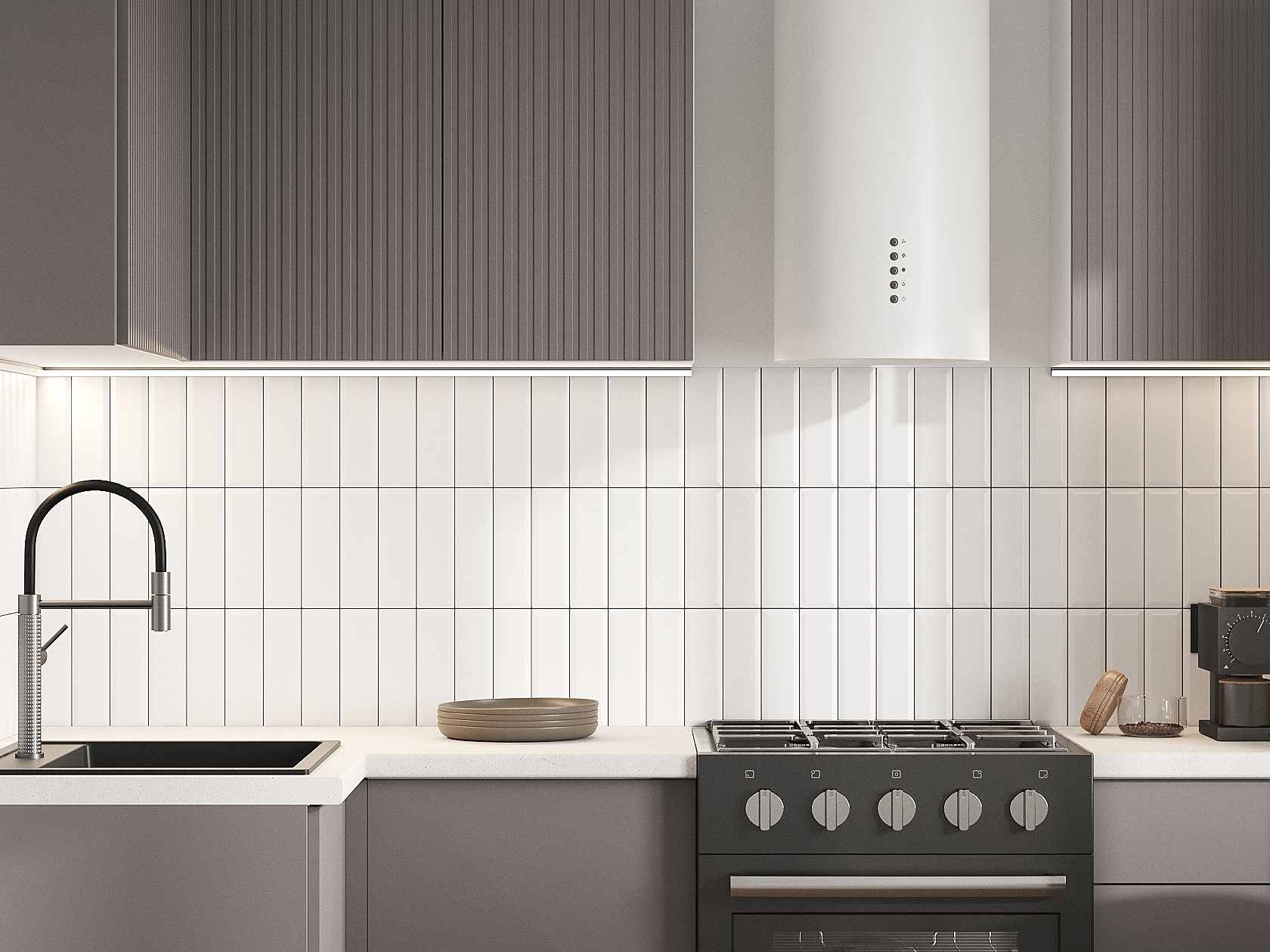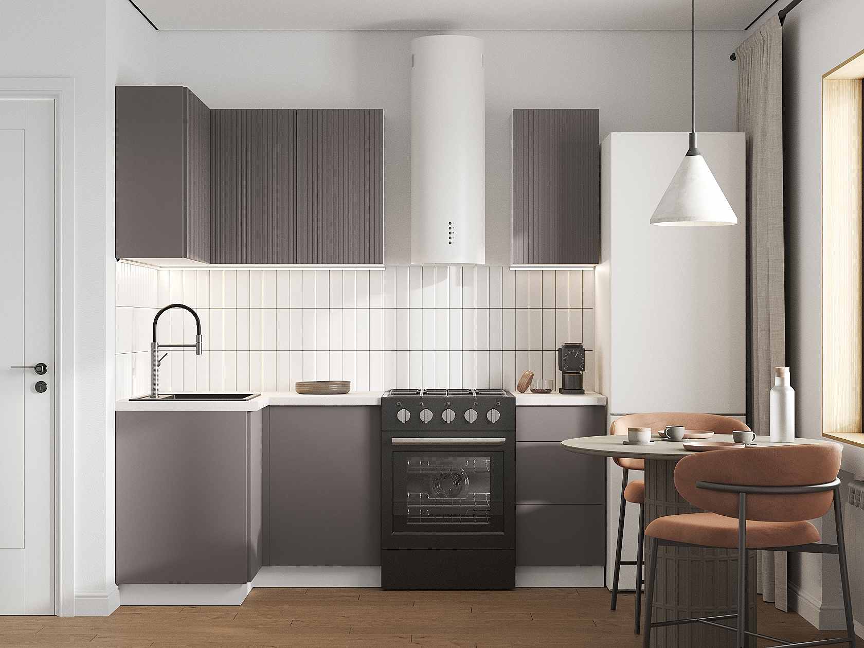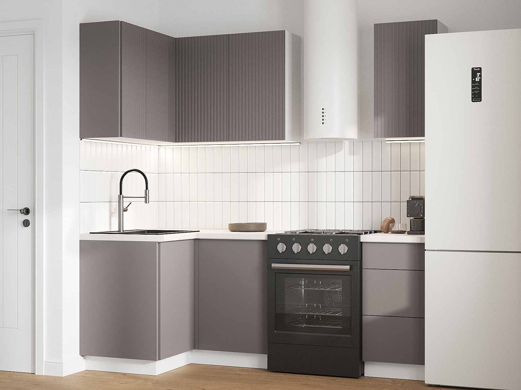 Кухонный гарнитур Комби 210х100 см Белый / Грей