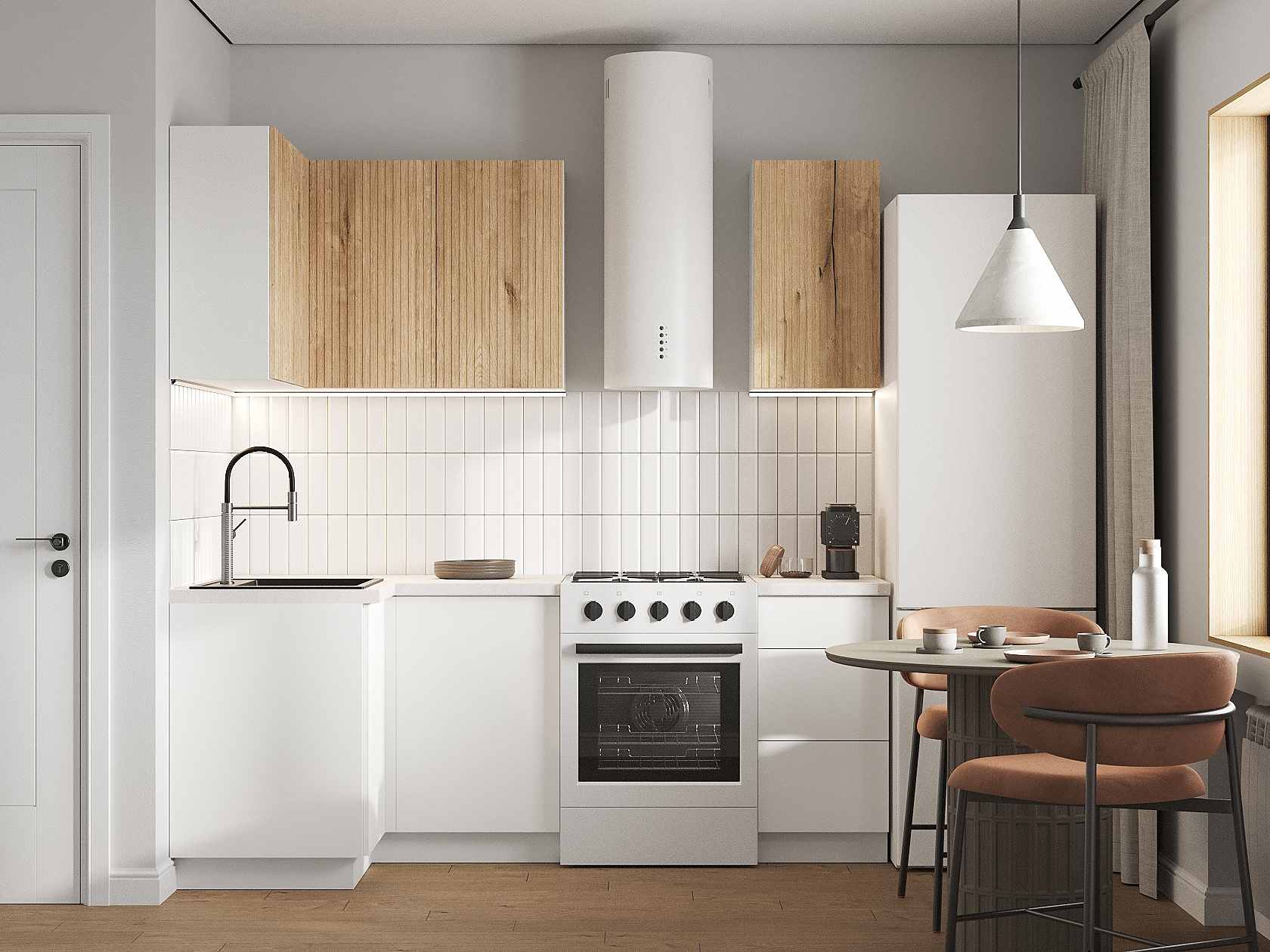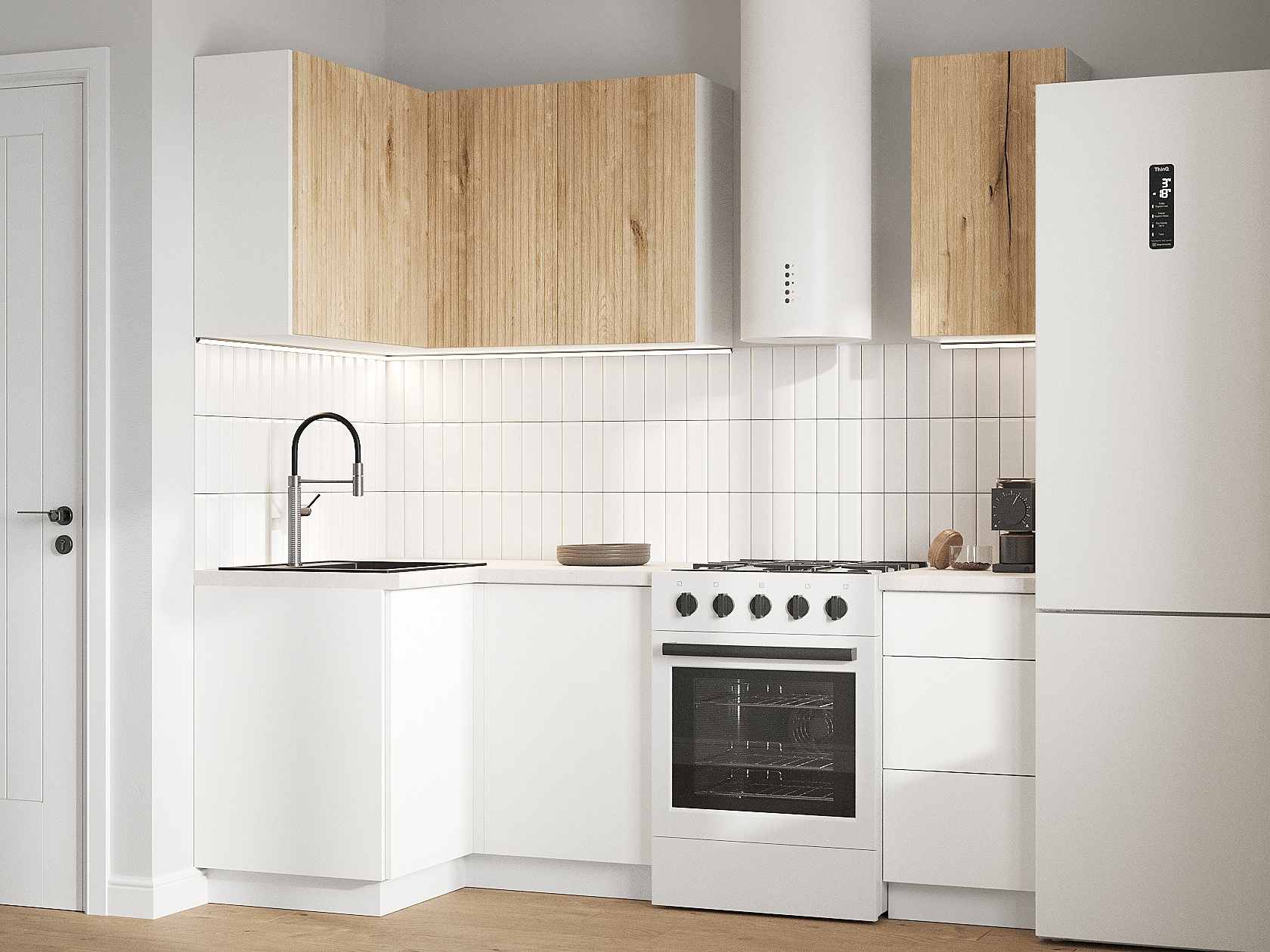 Кухонный гарнитур Комби 210х100 см Белый / Дуб Торонто / Бланж