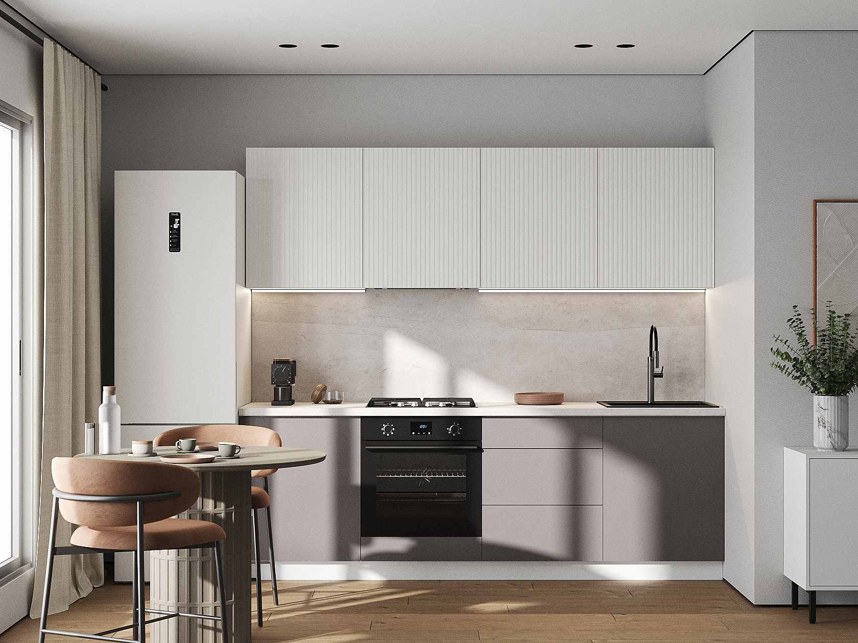 Кухонный гарнитур Комби 240 см Белый / Бланж / Грей