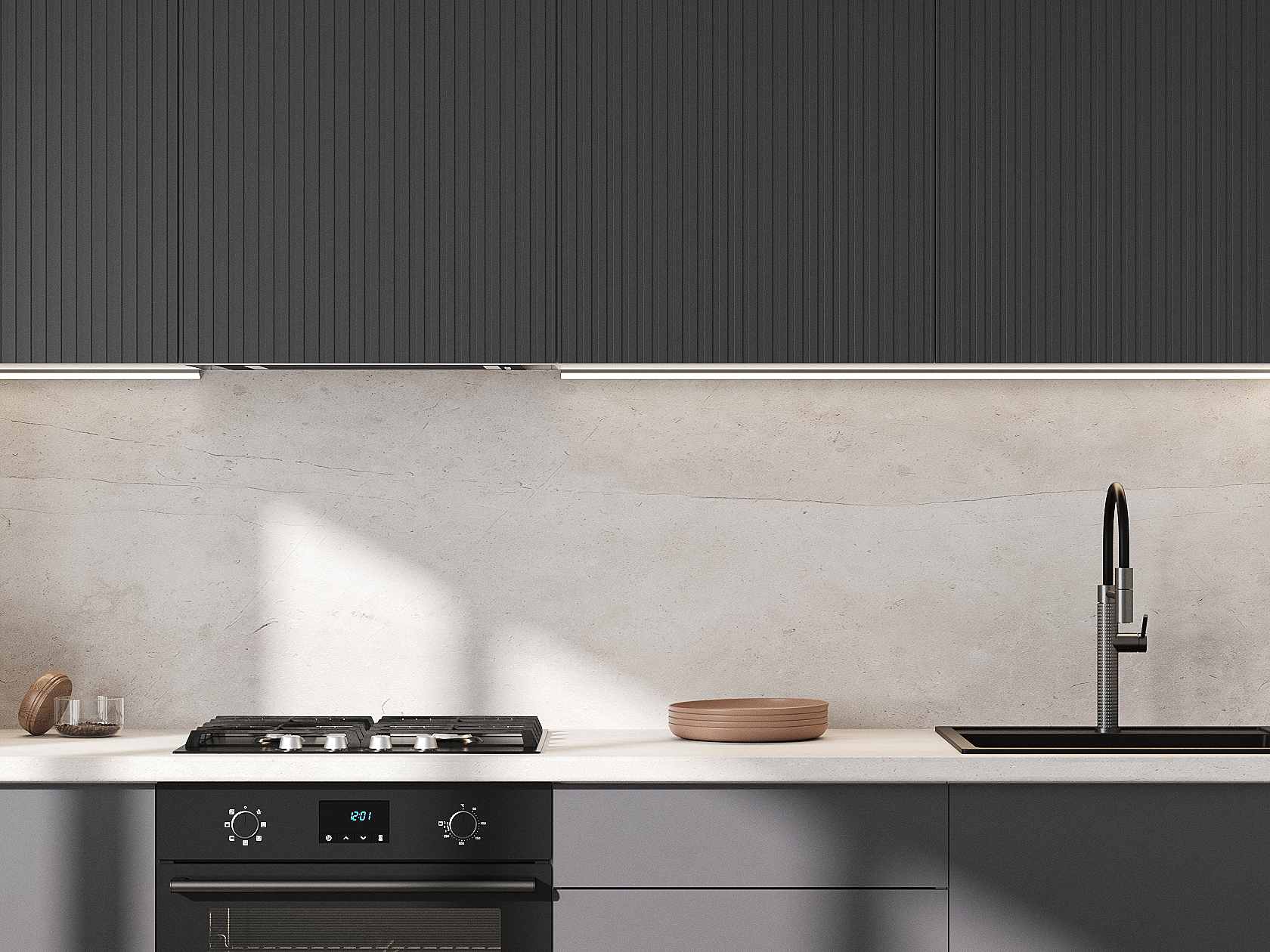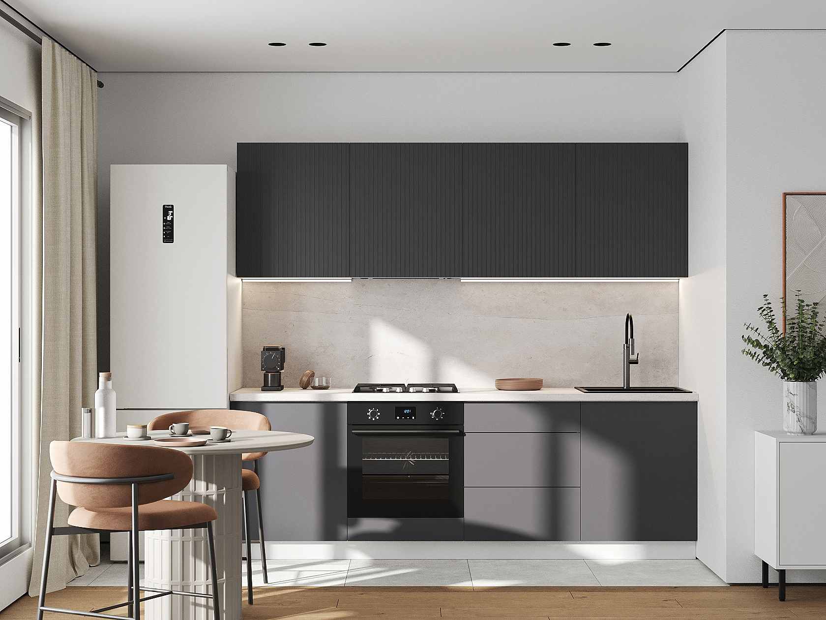 Кухонный гарнитур Комби 240 см Белый / Графит