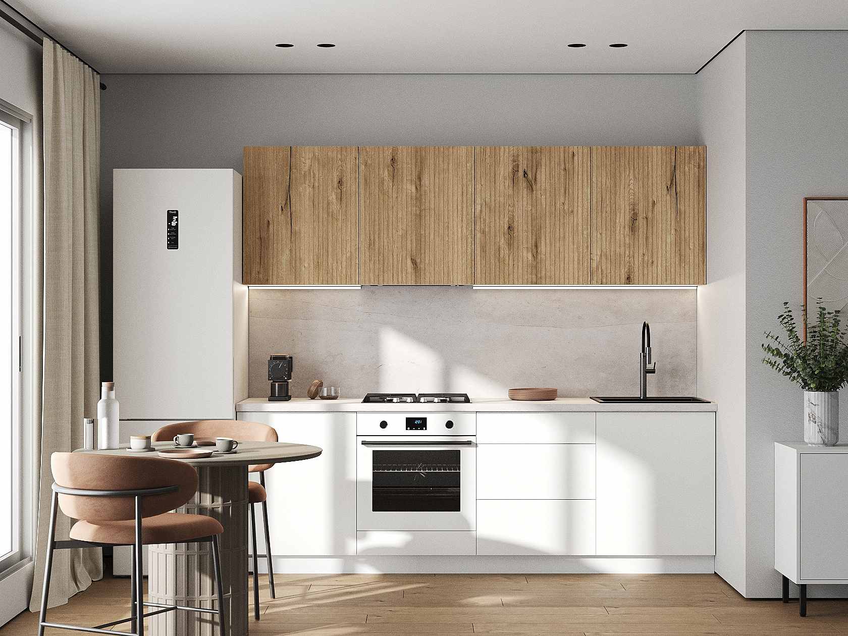 Кухонный гарнитур Комби 240 см Белый / Дуб Торонто / Бланж