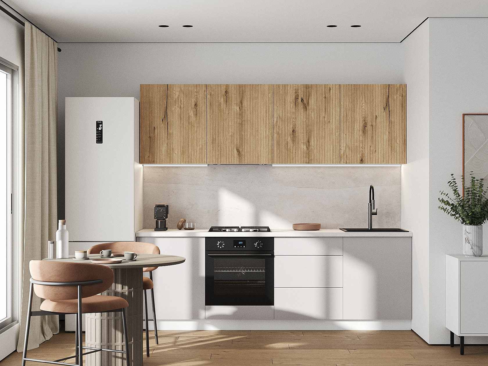 Кухонный гарнитур Комби 240 см Белый / Дуб Торонто / Нео