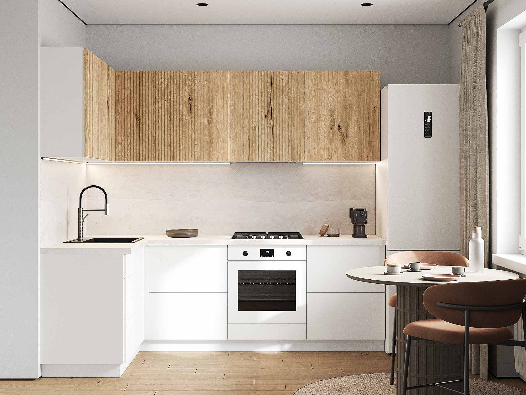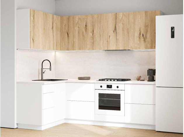 Кухонный гарнитур Комби 240х140 см Белый / Дуб Торонто / Бланж