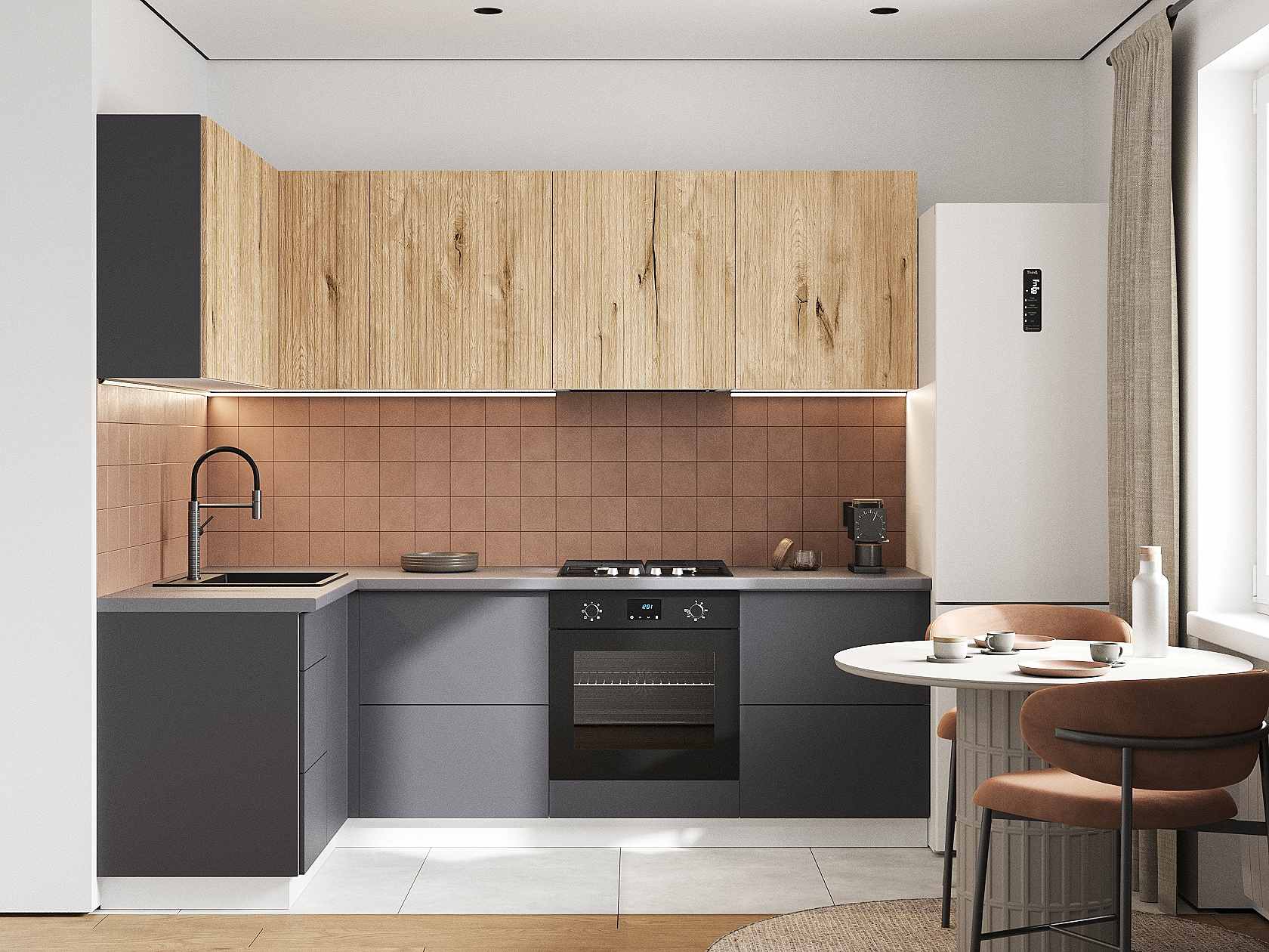 Кухонный гарнитур Комби 240х140 см Белый / Дуб Торонто / Графит