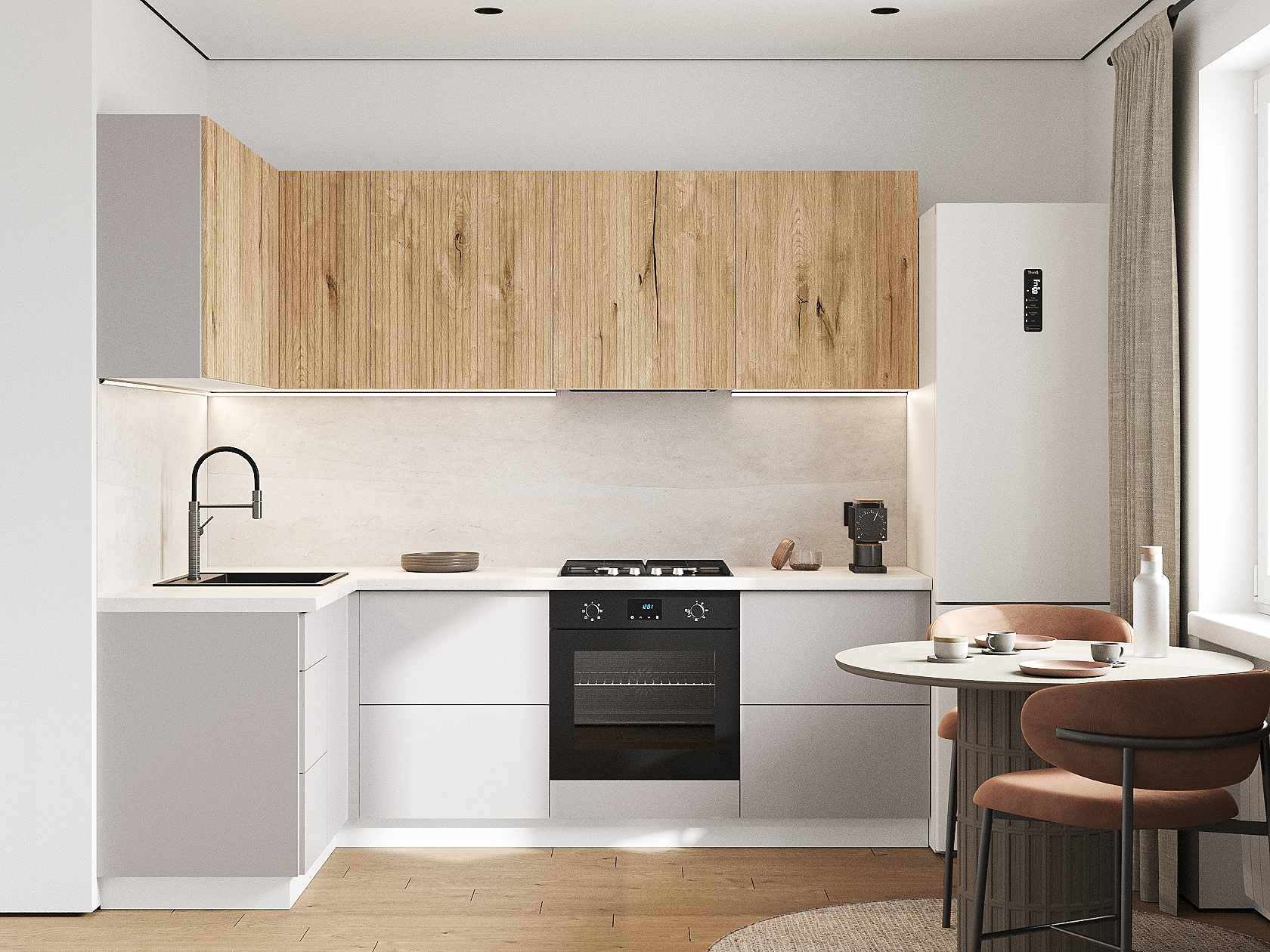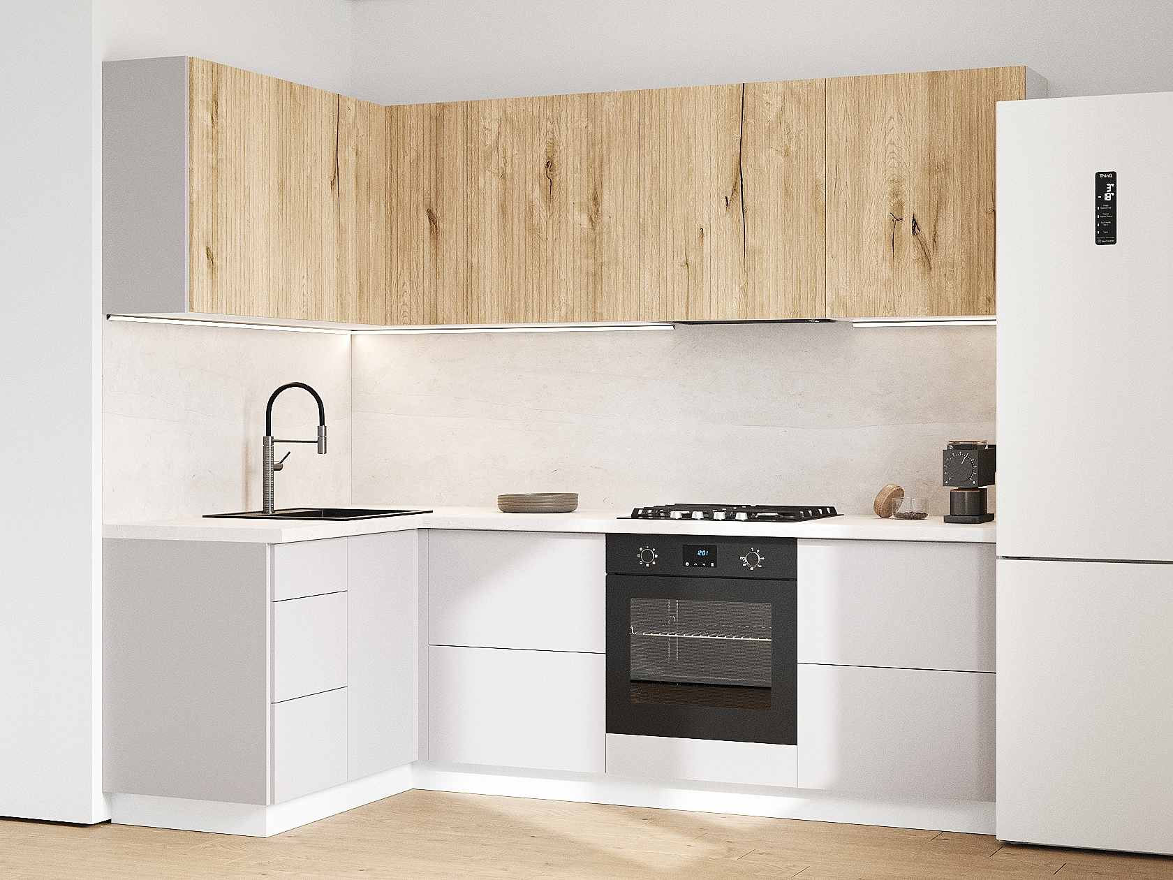 Кухонный гарнитур Комби 240х140 см Белый / Дуб Торонто / Нео