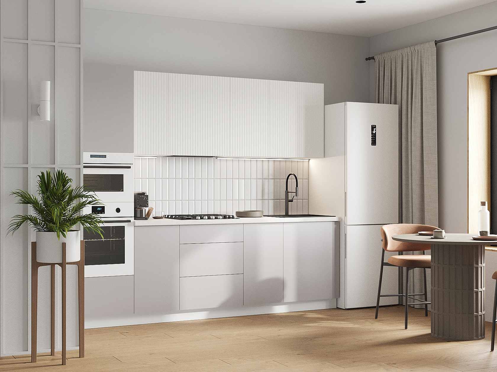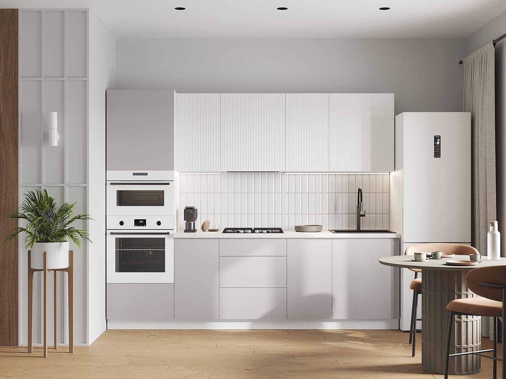 Кухонный гарнитур Комби 260 см Белый / Бланж / Нео