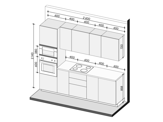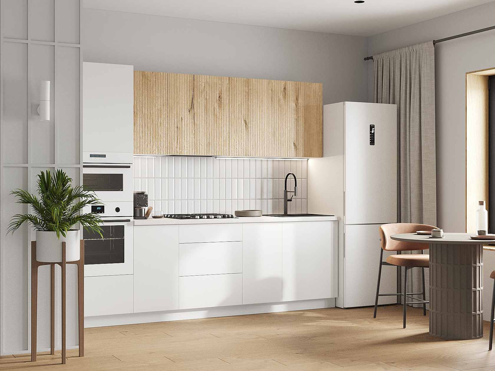 Кухонный гарнитур Комби 260 см Белый / Дуб Торонто / Бланж