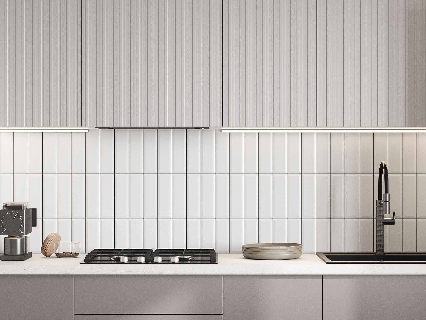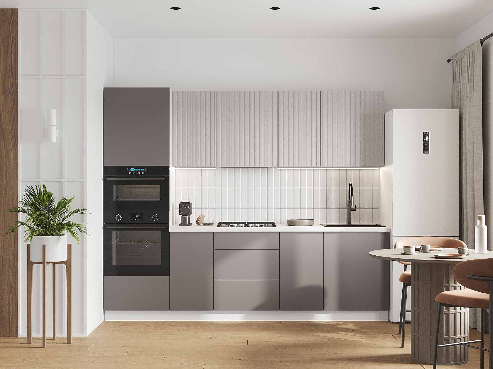 Кухонный гарнитур Комби 260 см Белый / Нео / Грей