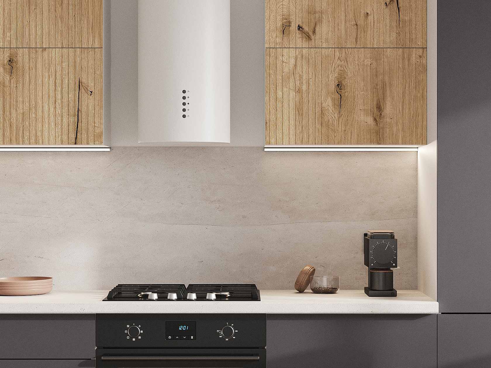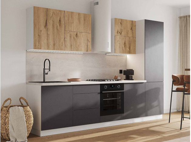 Кухонный гарнитур Комби 300 см Белый / Дуб Торонто / Графит