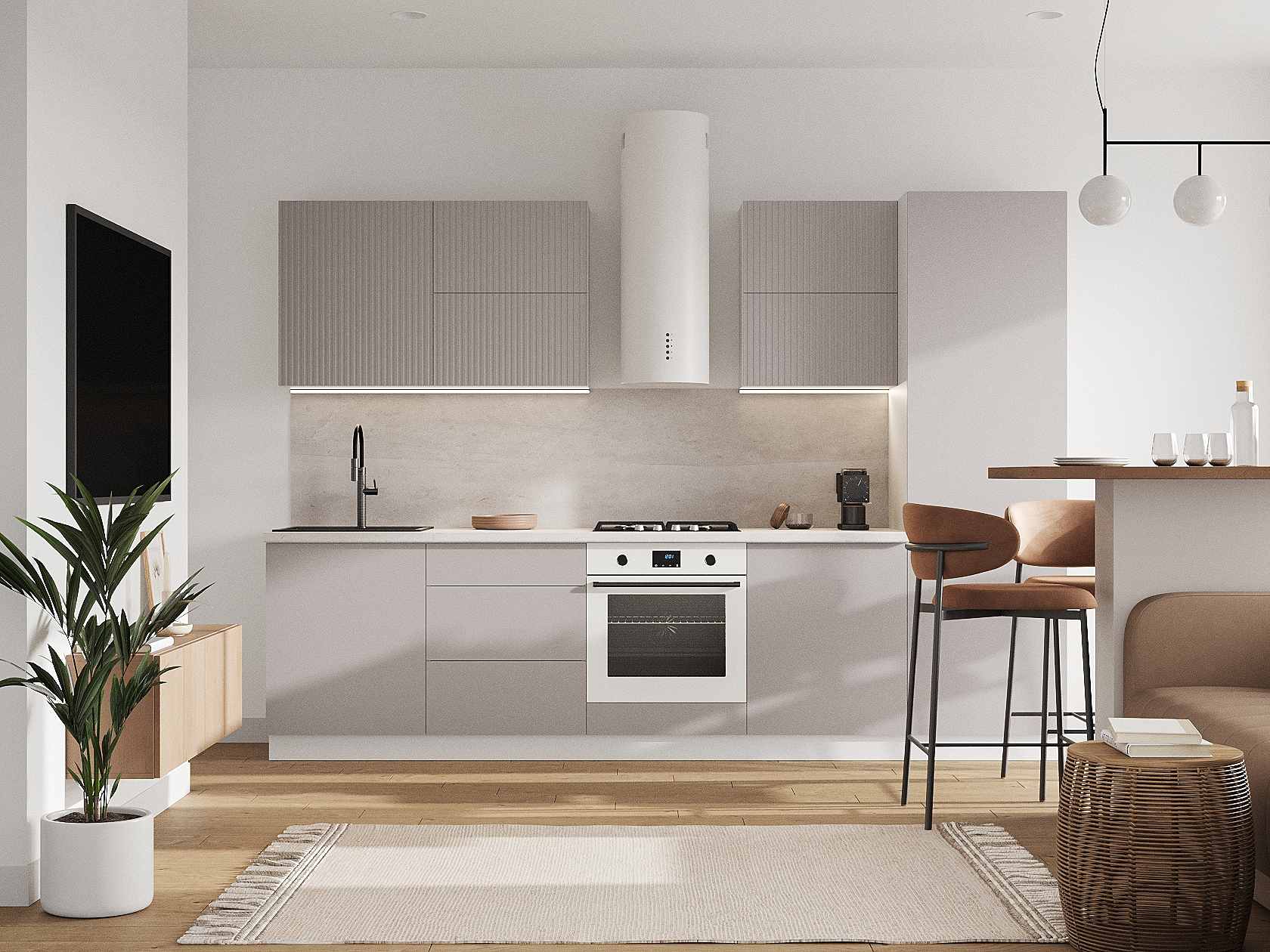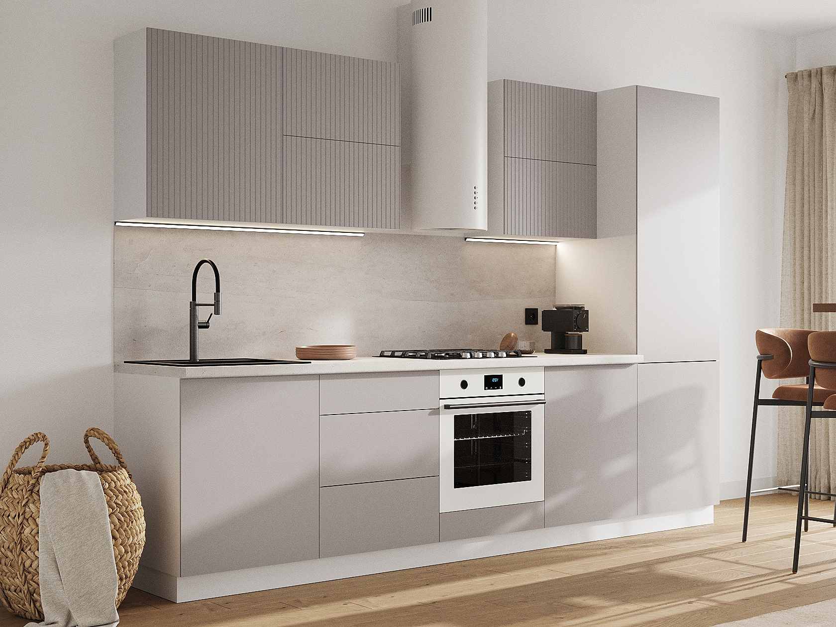 Обратите внимание, столешницу, мойку, смеситель, цоколь, стеновую панель, ручки и механизм «push-to-open» необходимо приобрести отдельно.