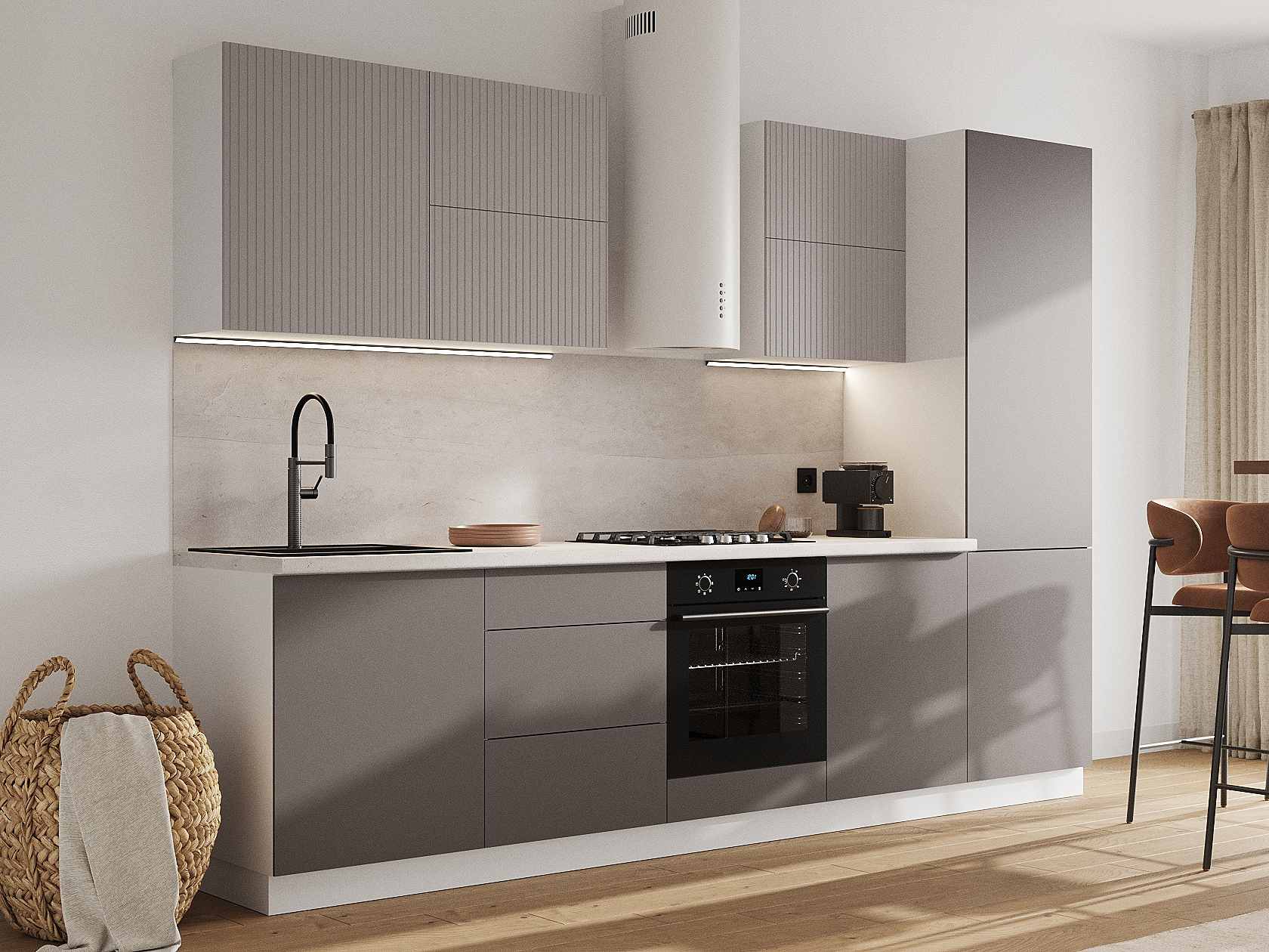 Кухонный гарнитур Комби 300 см Белый / Нео / Грей