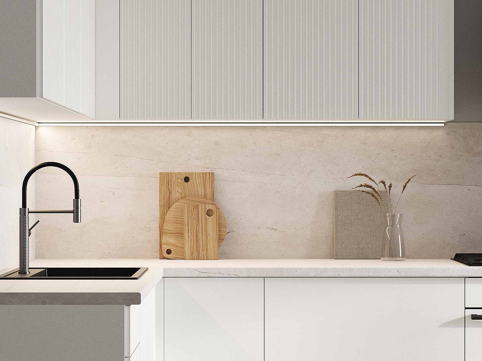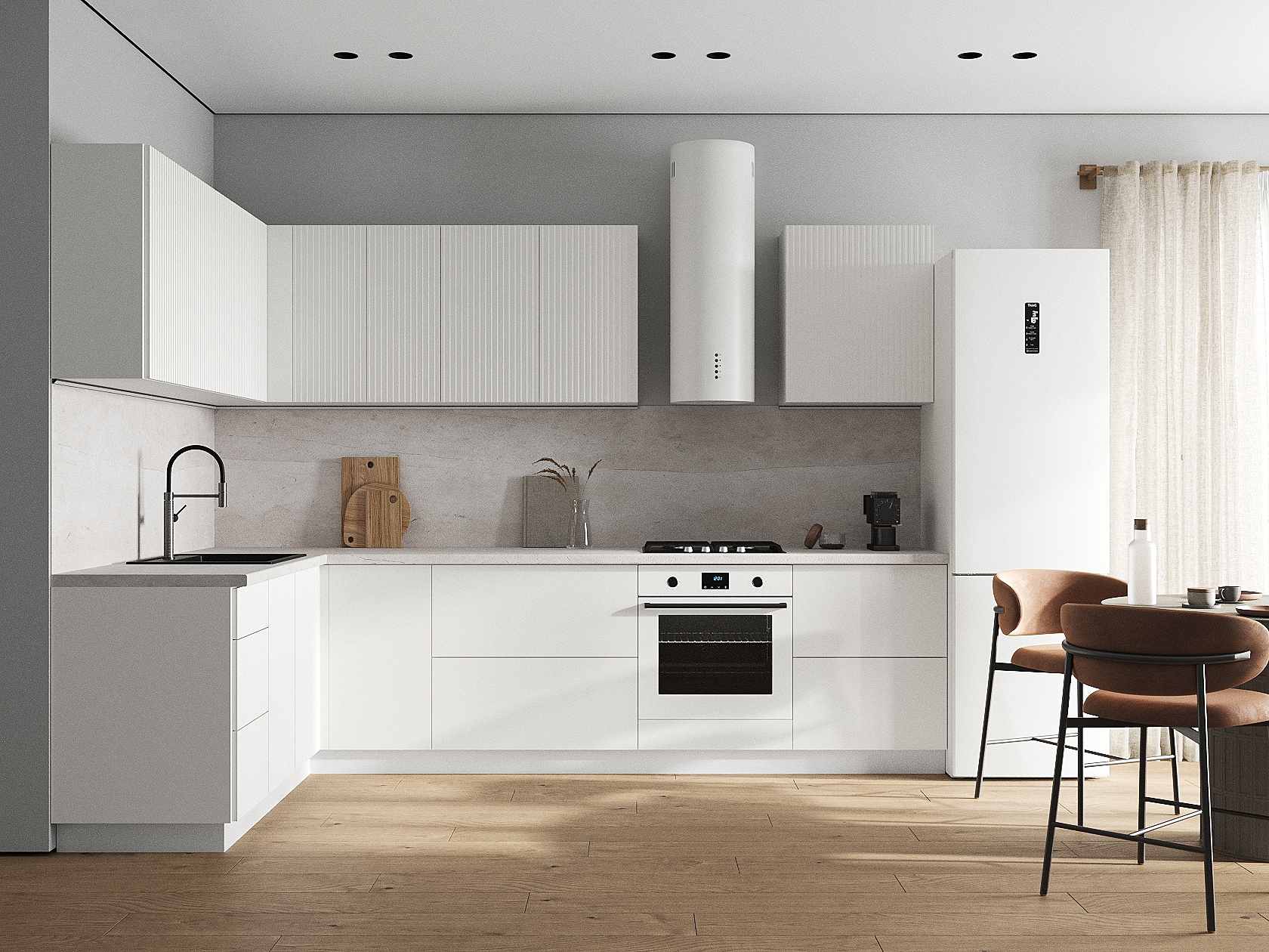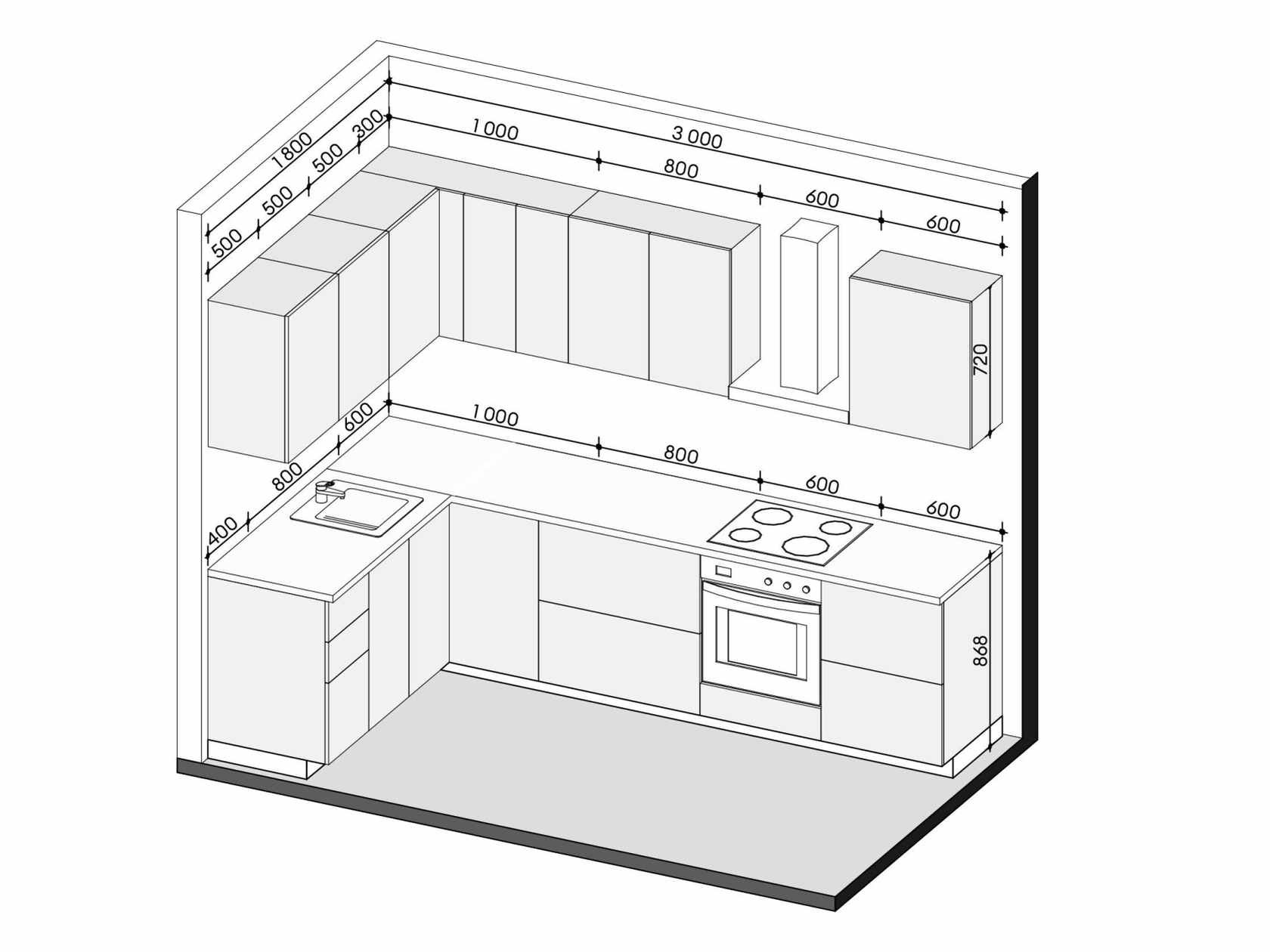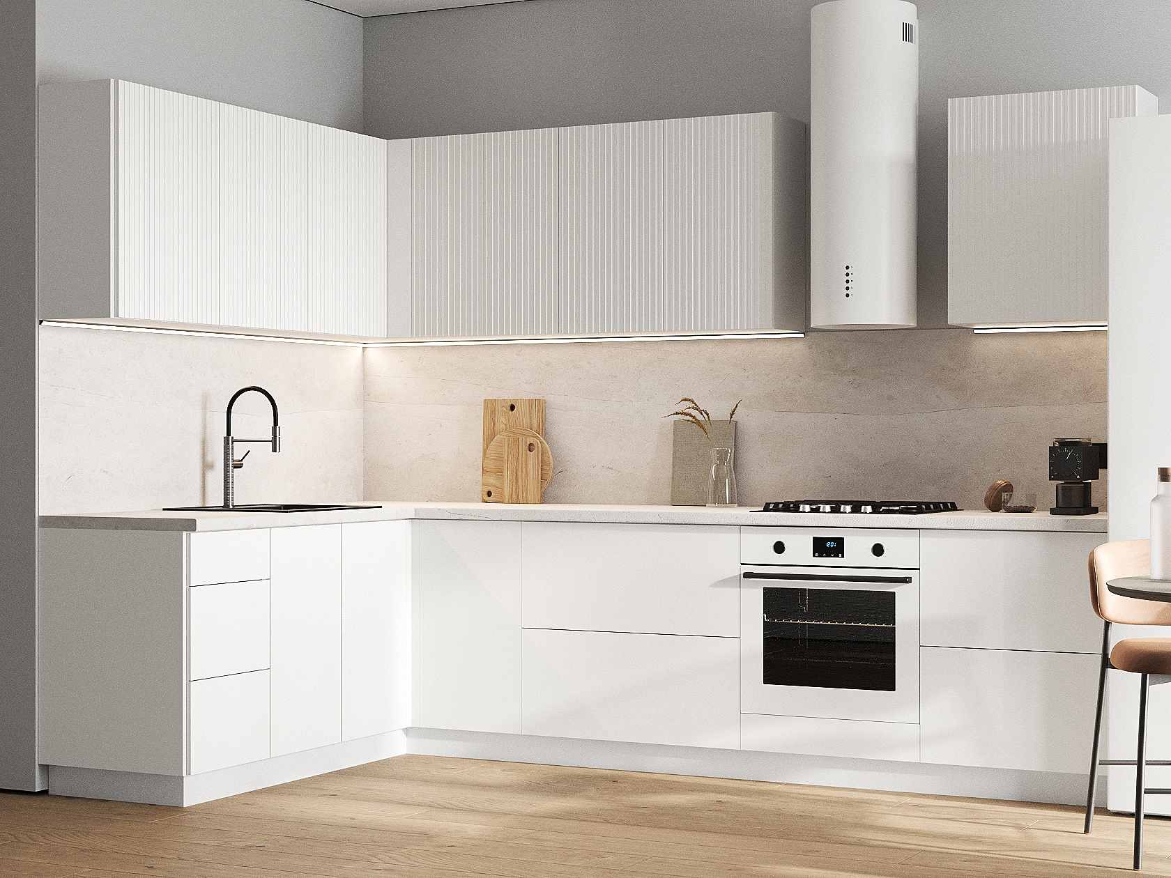 Кухонный гарнитур Комби 300х180 см Белый / Бланж