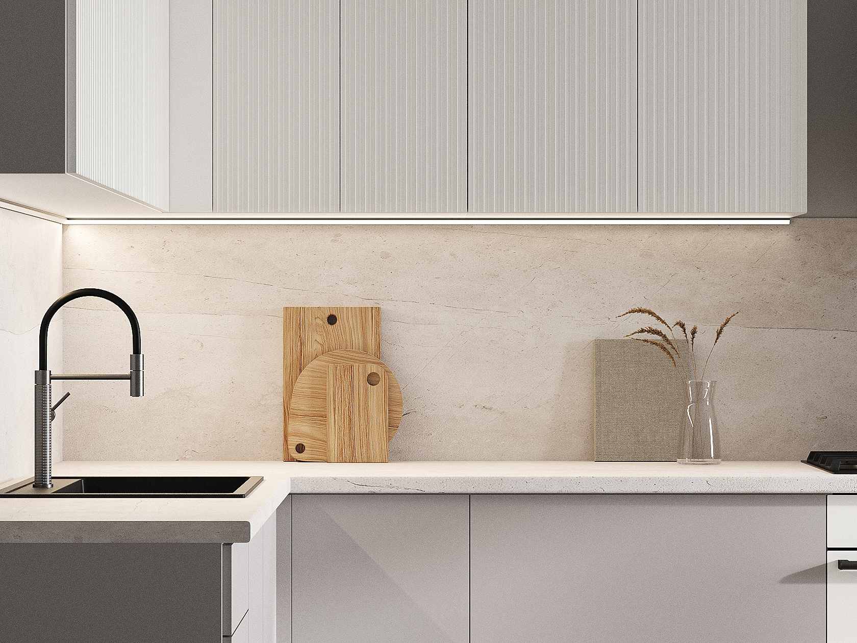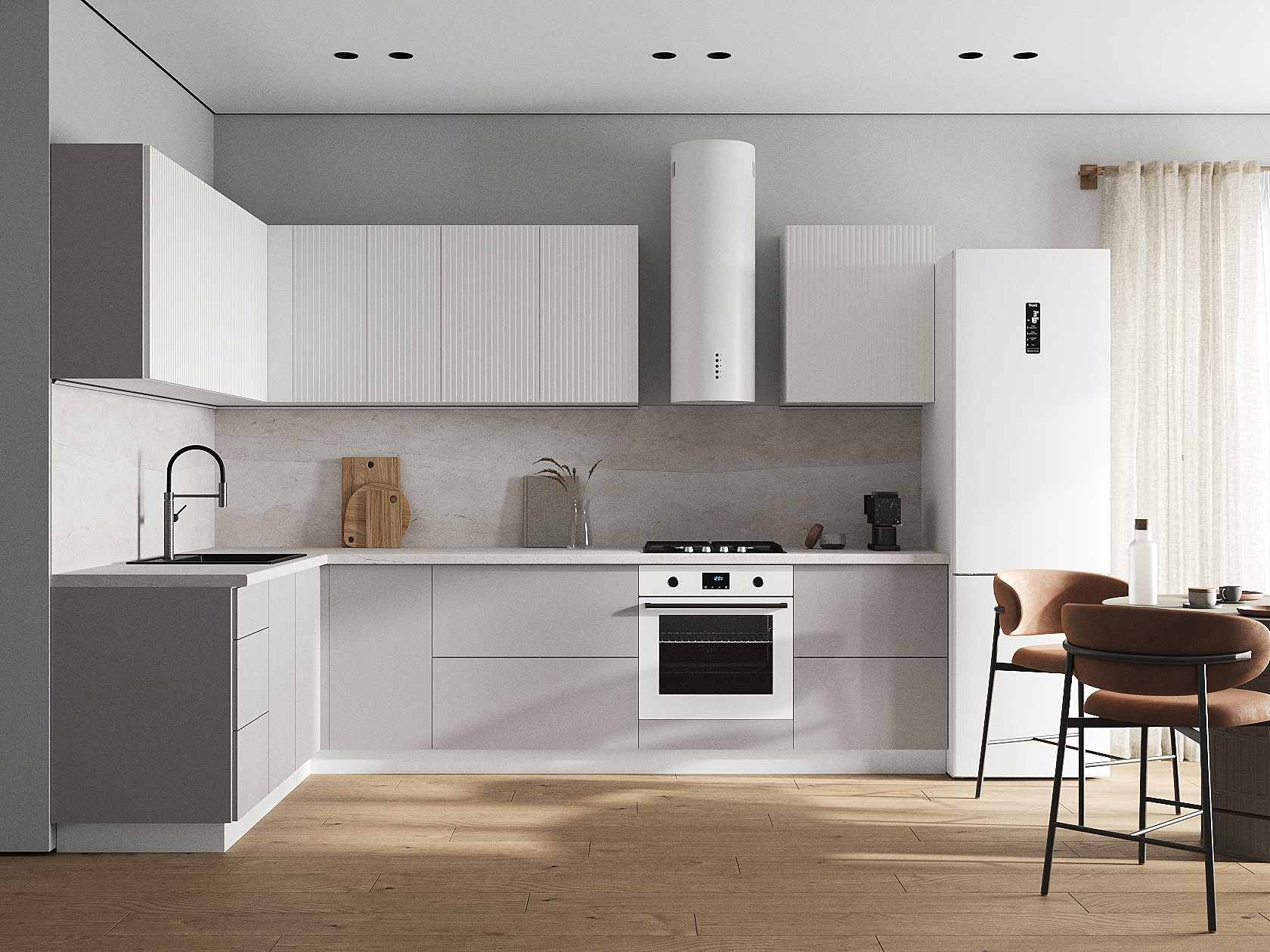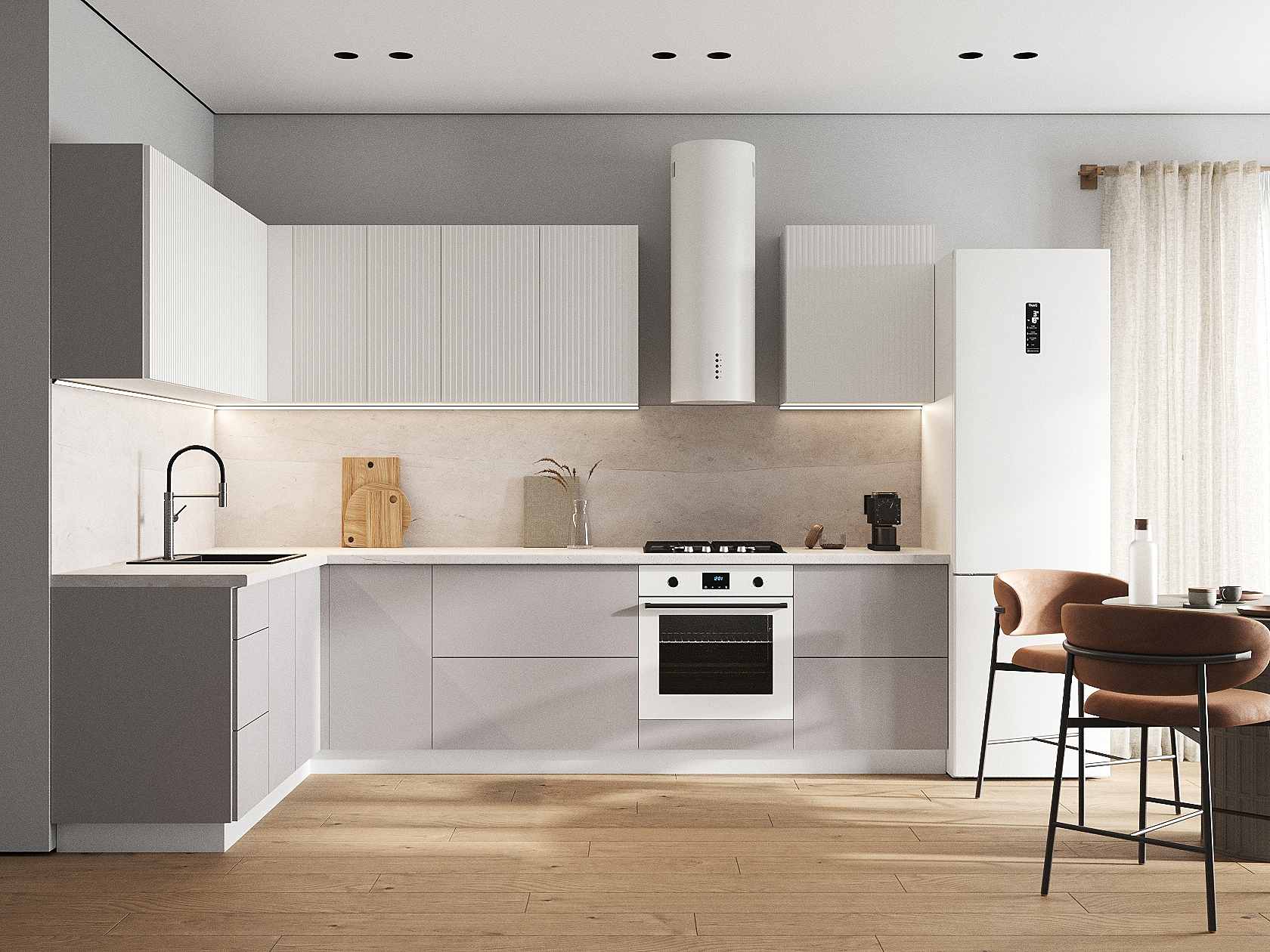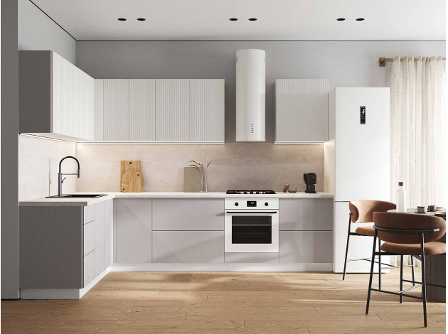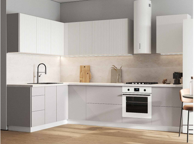 Кухонный гарнитур Комби 300х180 см Белый / Бланж / Нео