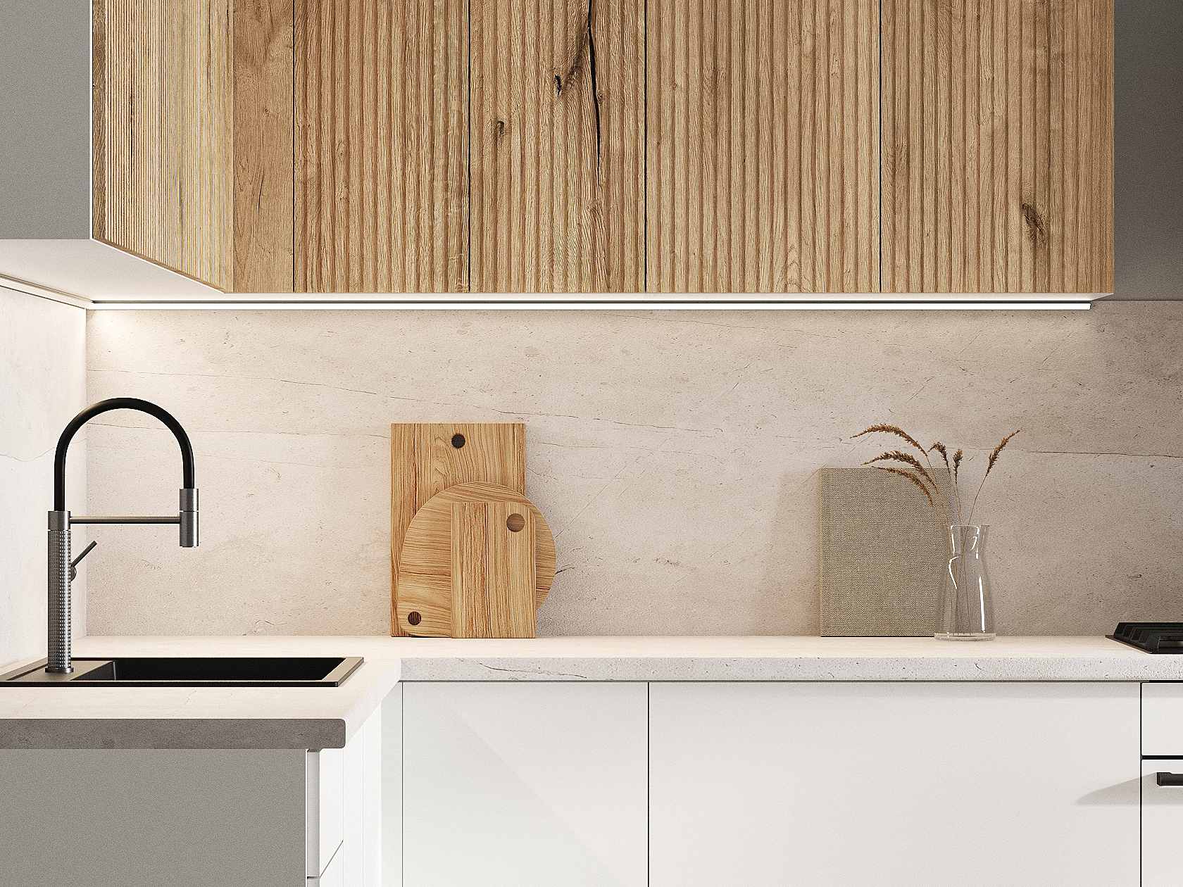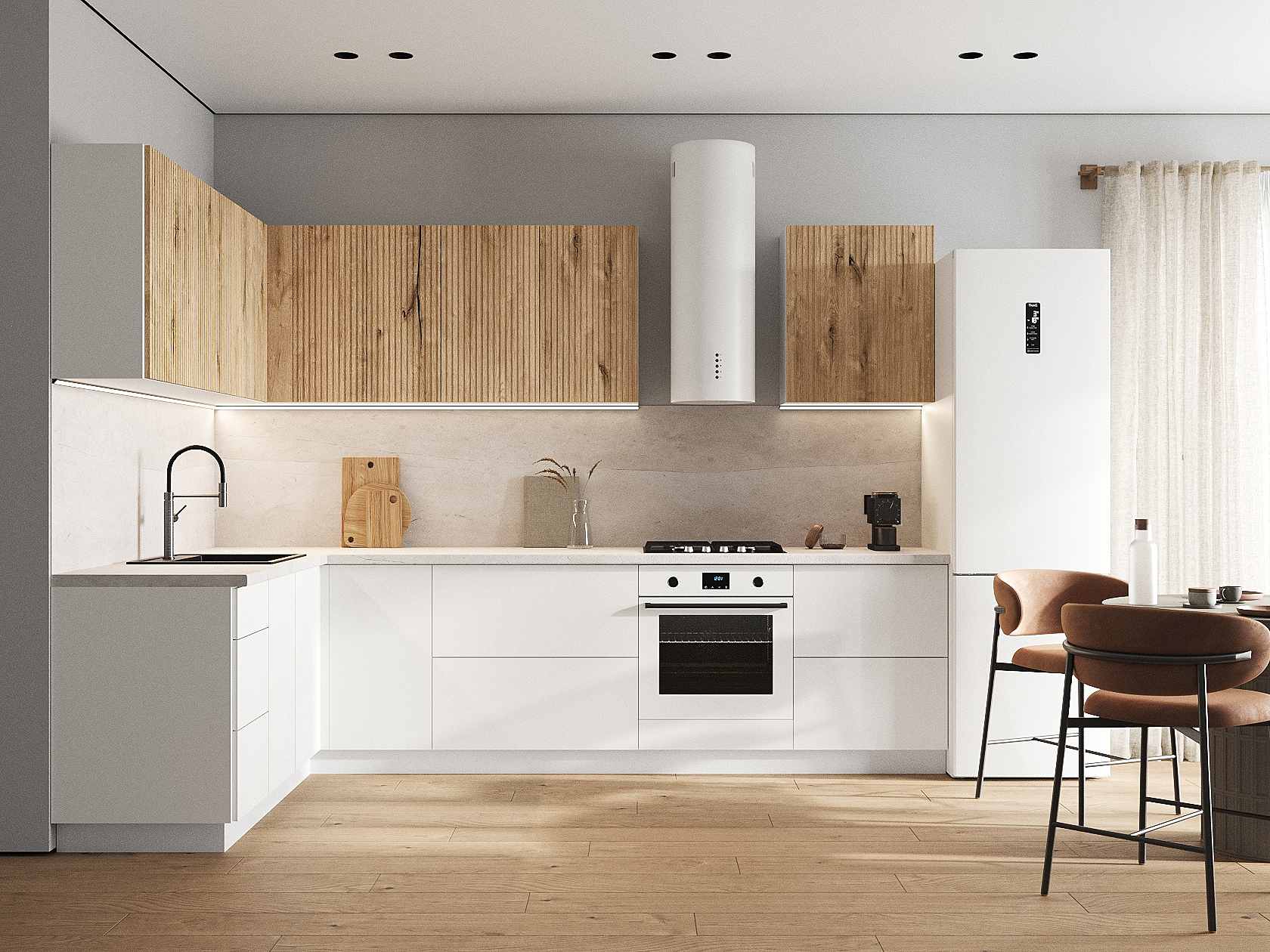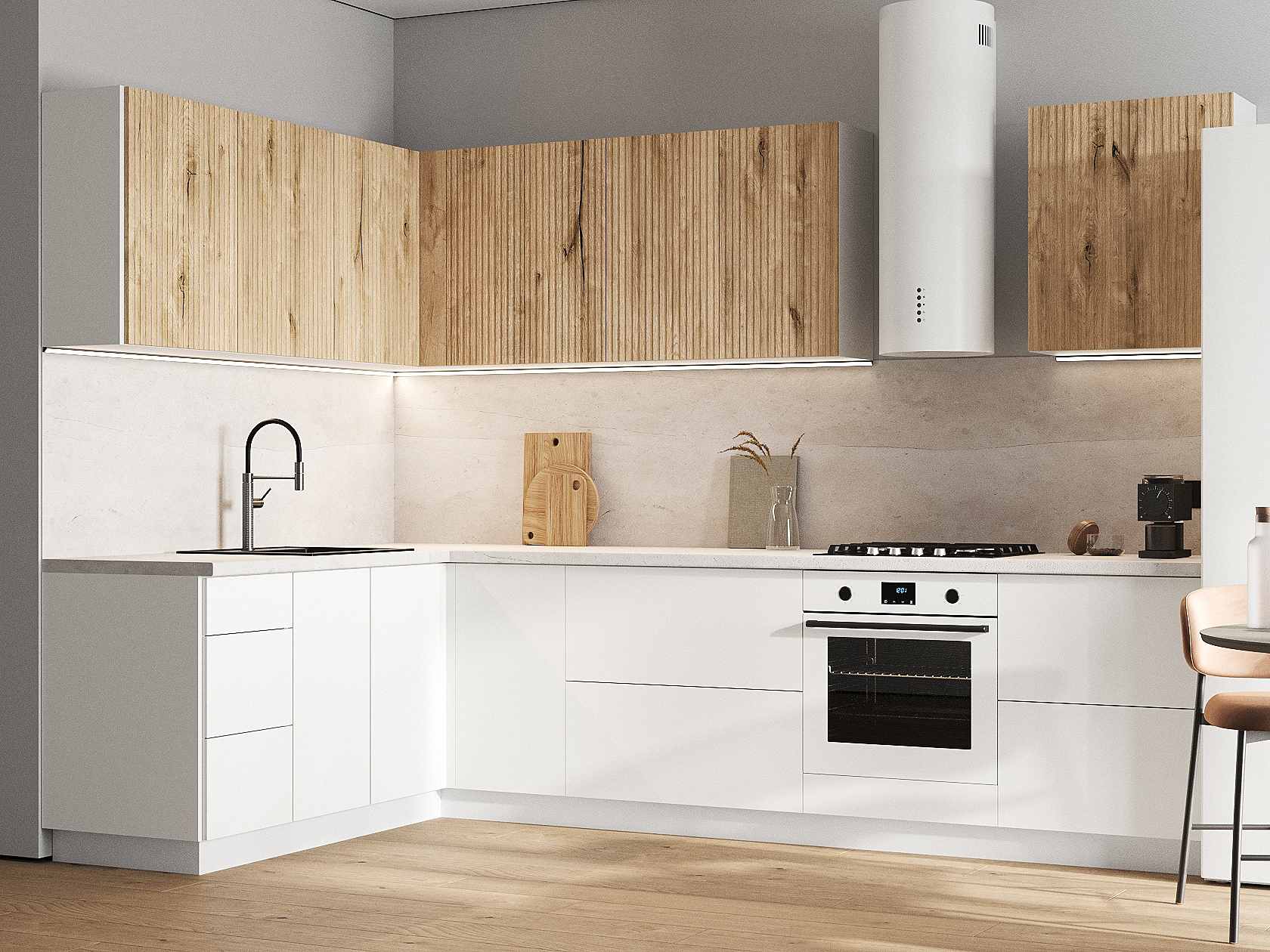 Кухонный гарнитур Комби 300х180 см Белый / Дуб Торонто / Бланж