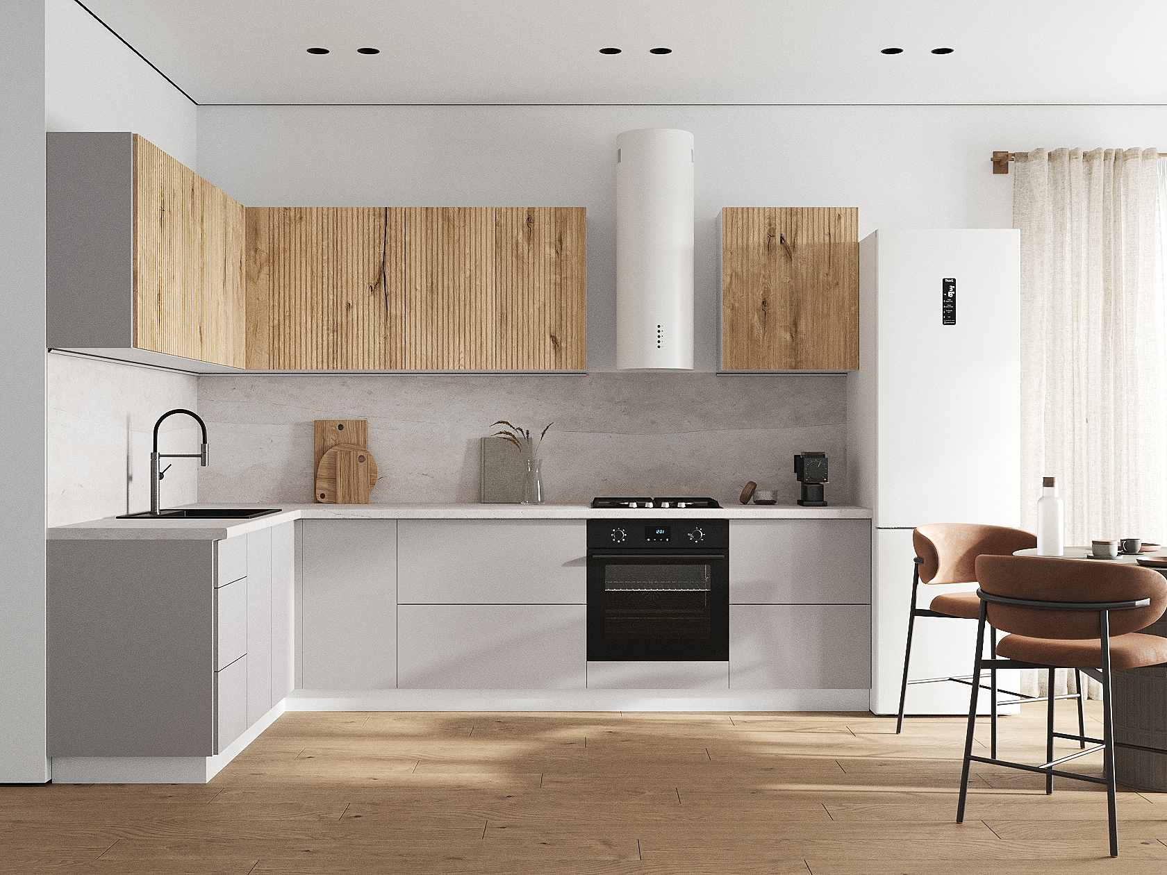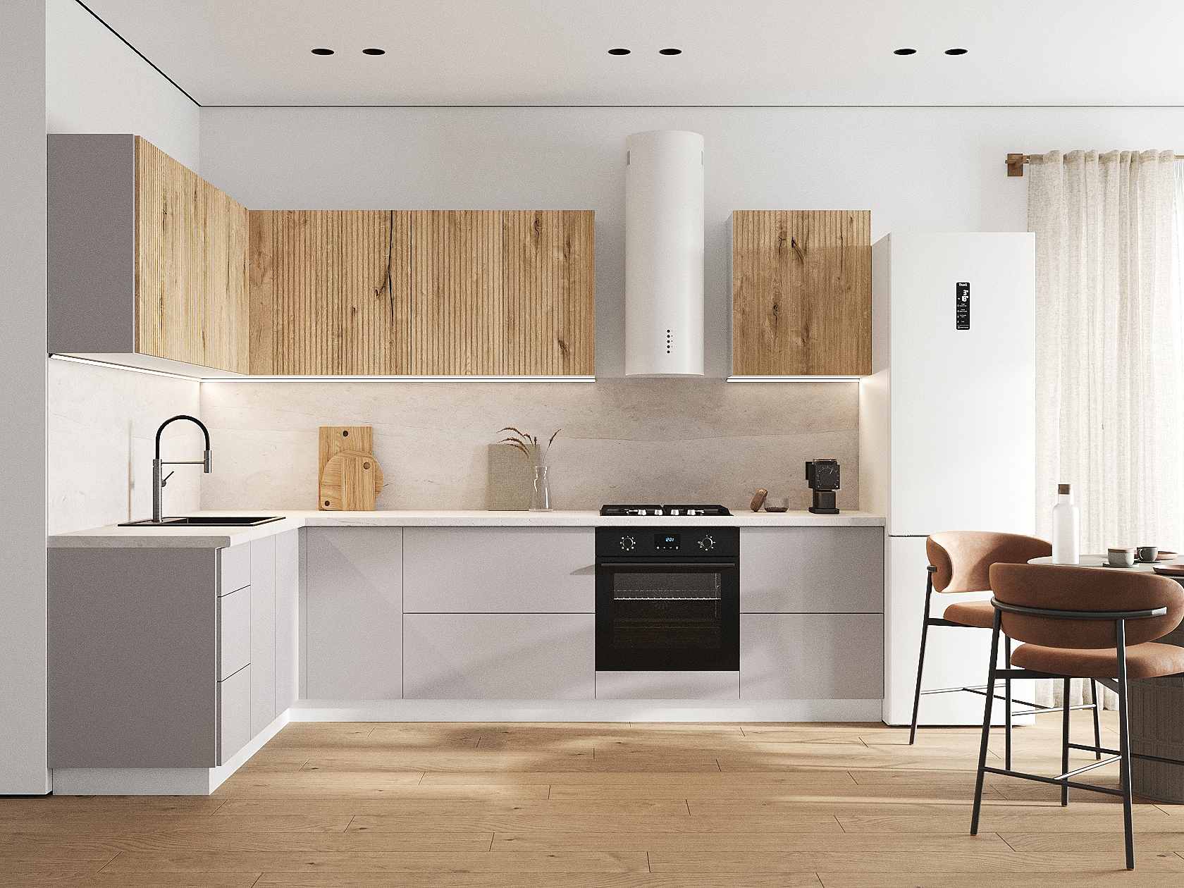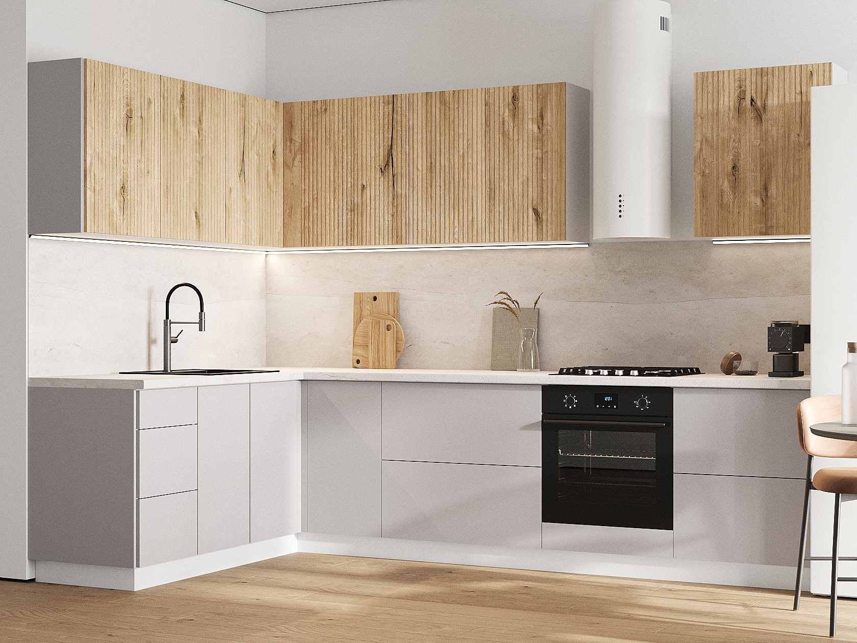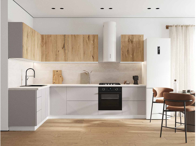 Кухонный гарнитур Комби 300х180 см Белый / Дуб Торонто / Нео