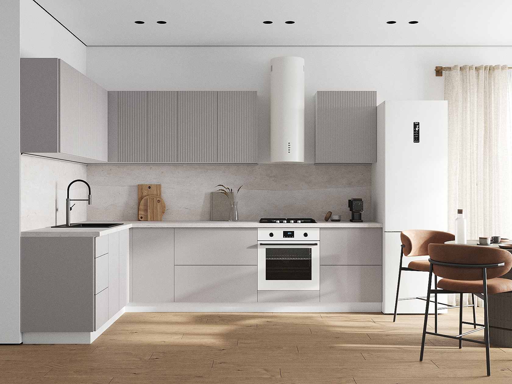 Кухонный гарнитур Комби 300х180 см Белый / Нео