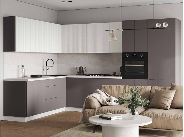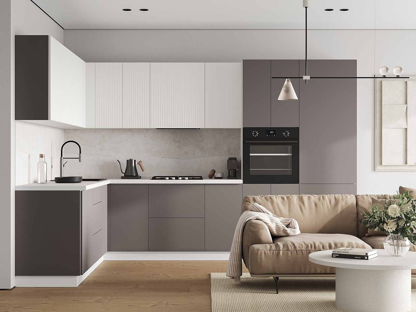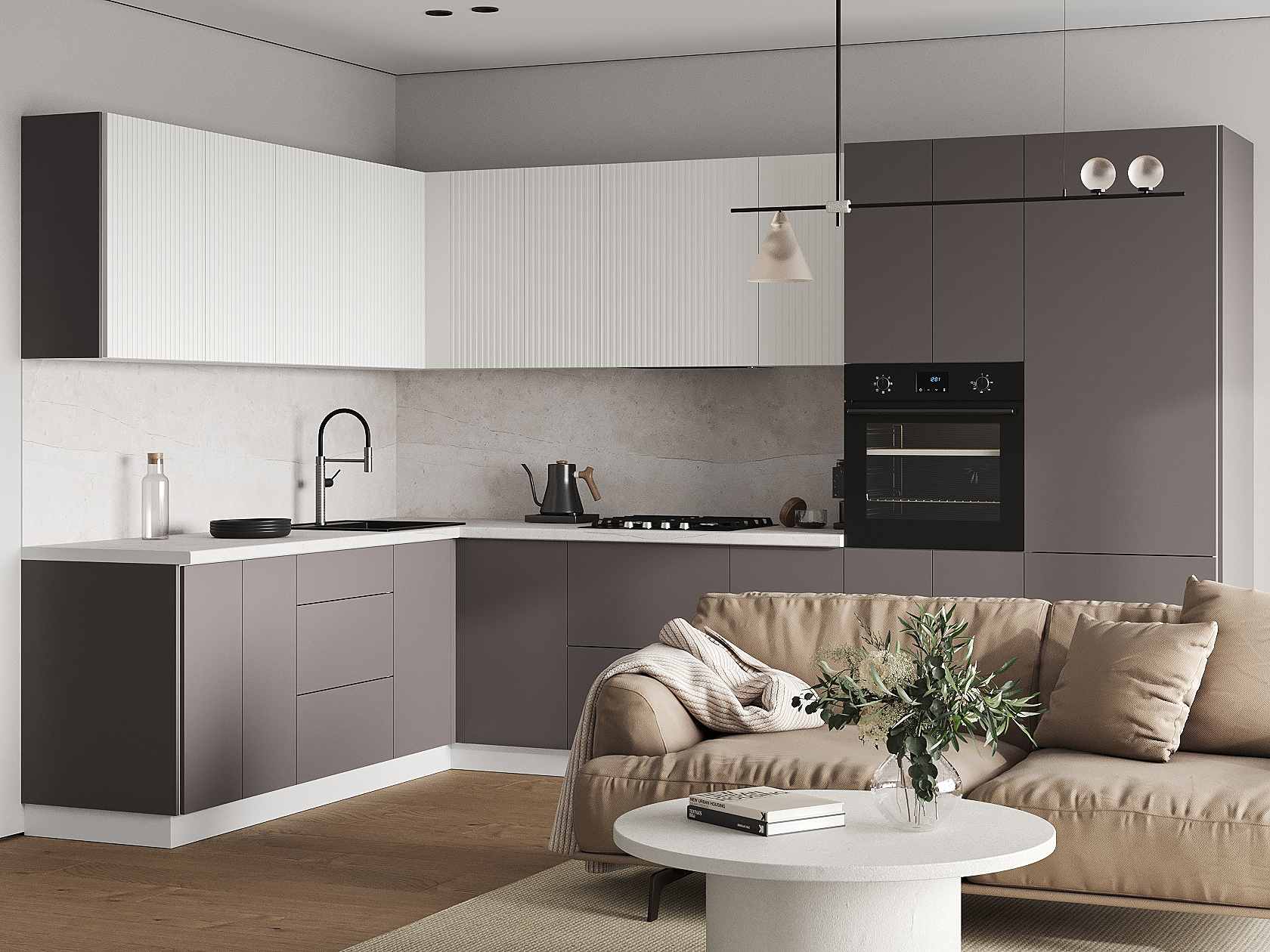 Кухонный гарнитур Комби 320х220 см Белый / Бланж / Грей