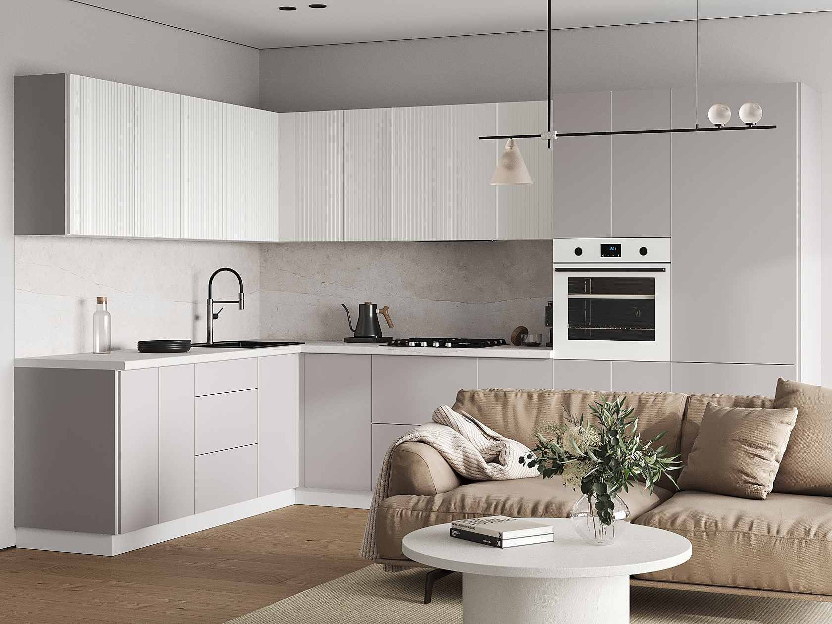 Кухонный гарнитур Комби 320х220 см Белый / Бланж / Нео
