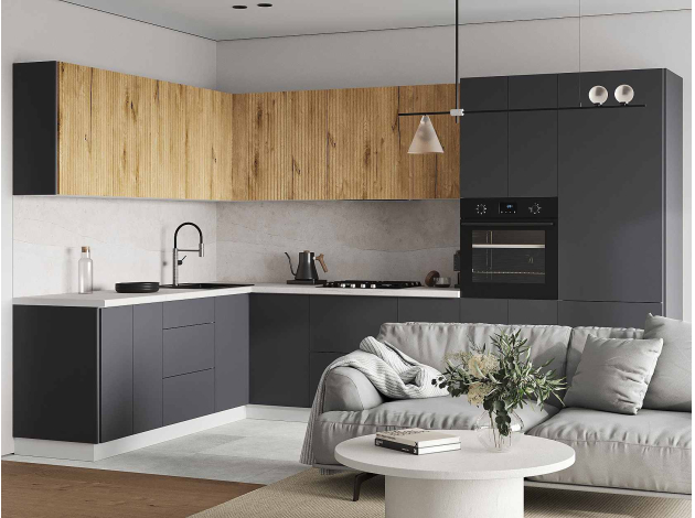 Кухонный гарнитур Комби 320х220 см Белый / Дуб Торонто / Графит