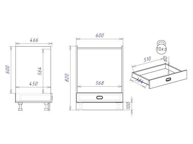 - Максимальная нагрузка на ящик: 10 кг.