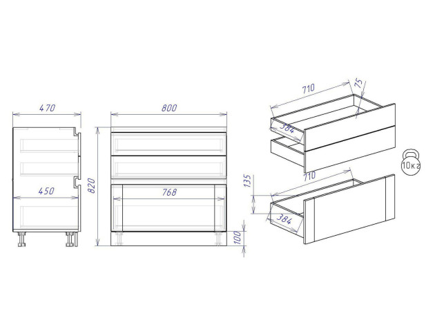- Максимальная нагрузка на ящик: 10 кг.