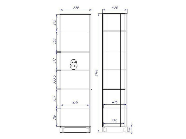 - Максимальная нагрузка на полку: 20 кг.