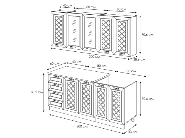 Кухонный гарнитур Агава 200 см корпус Белый / Акация белая / столешница Калаката
